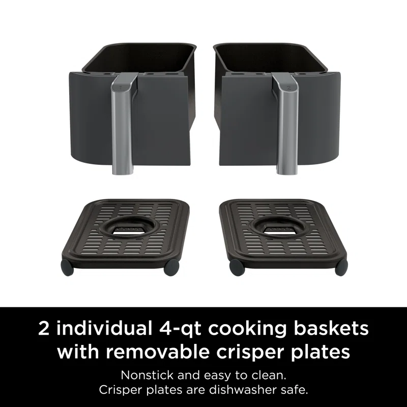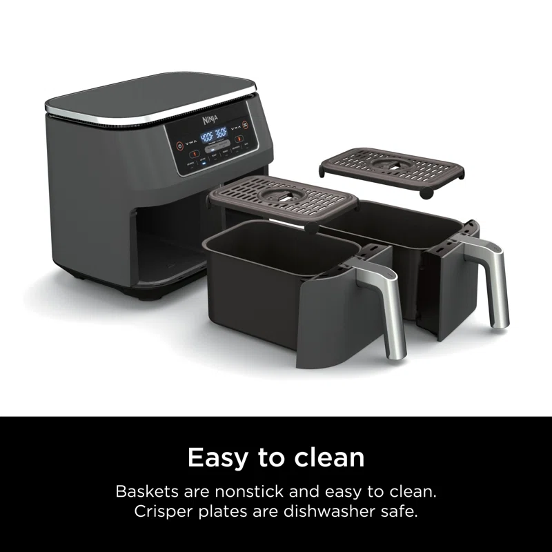 Ninja DZ201 Foodi 8 Quart 6-in-1 DualZone 2-Basket Air Fryer with 2 Independent Frying Baskets. Match Cook & Smart Finish to Roast. Broil. Dehydrate & More for Quick. Easy Meals. Grey