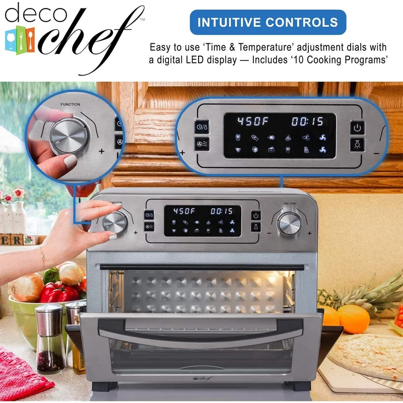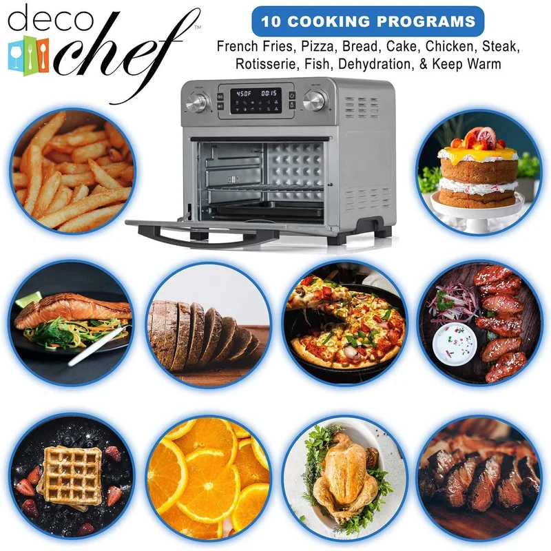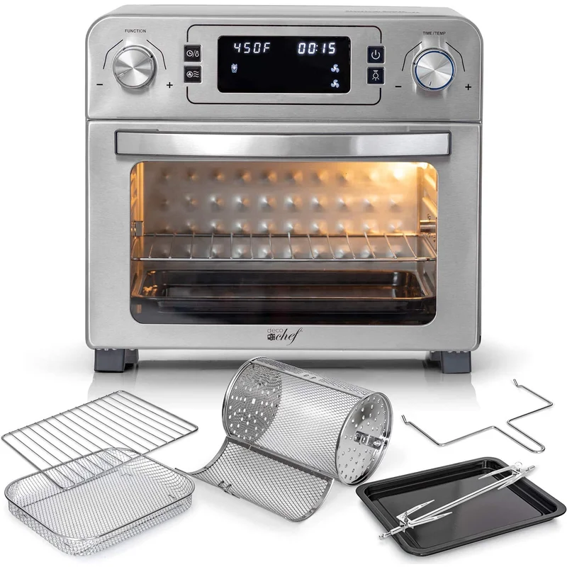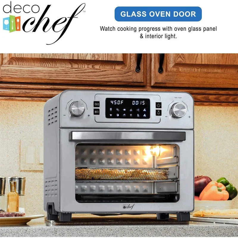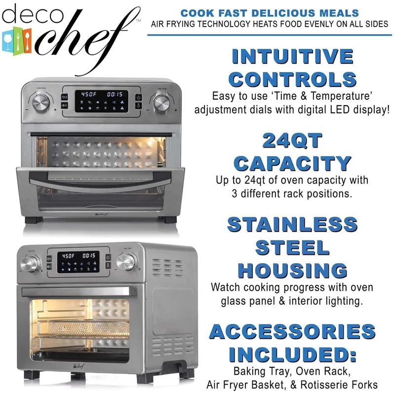 Deco Chef DGTQAIRSTS 24 QT Stainless Steel Countertop 1700 Watt Toaster Oven with Built-in Air Fryer and Included Rotisserie Assembly. Grill Rack. Frying Basket. and Baking Pan