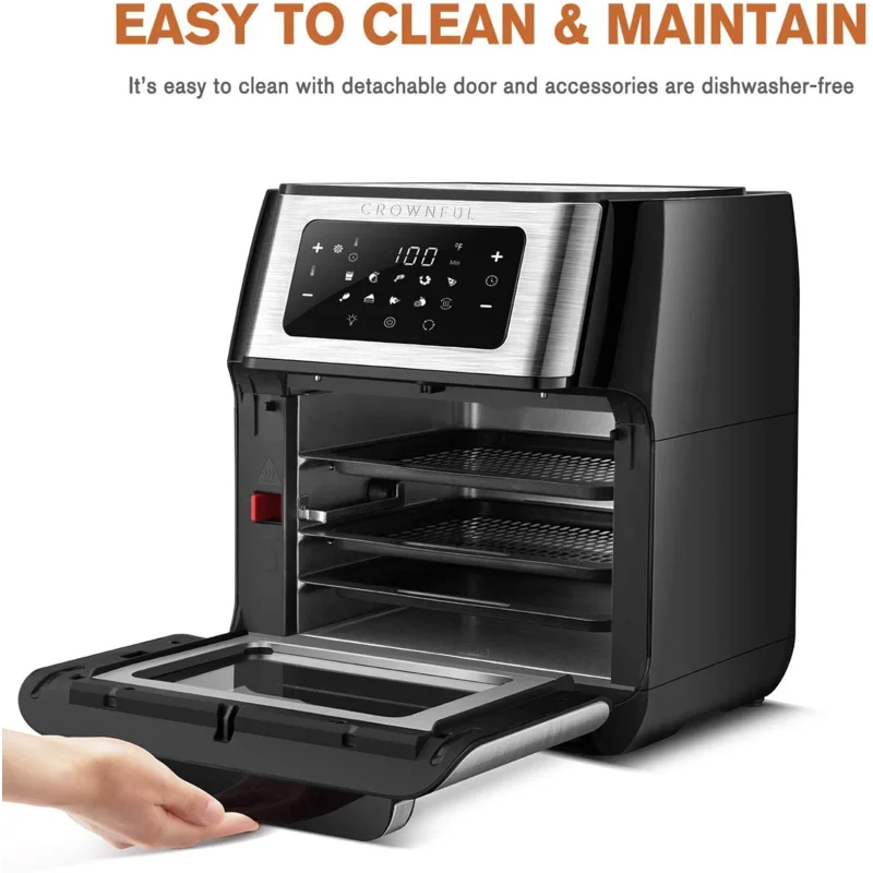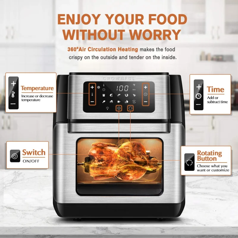 CROWNFUL TXG-KK-DT10L-D Air Fryer. 10.6 Quart Large Convection Toaster Oven with Digital LCD Touch Screen. 10 in 1 Oilless Cooker with Rotisserie and Dehydrator. Accessories and Online Cookbook Included