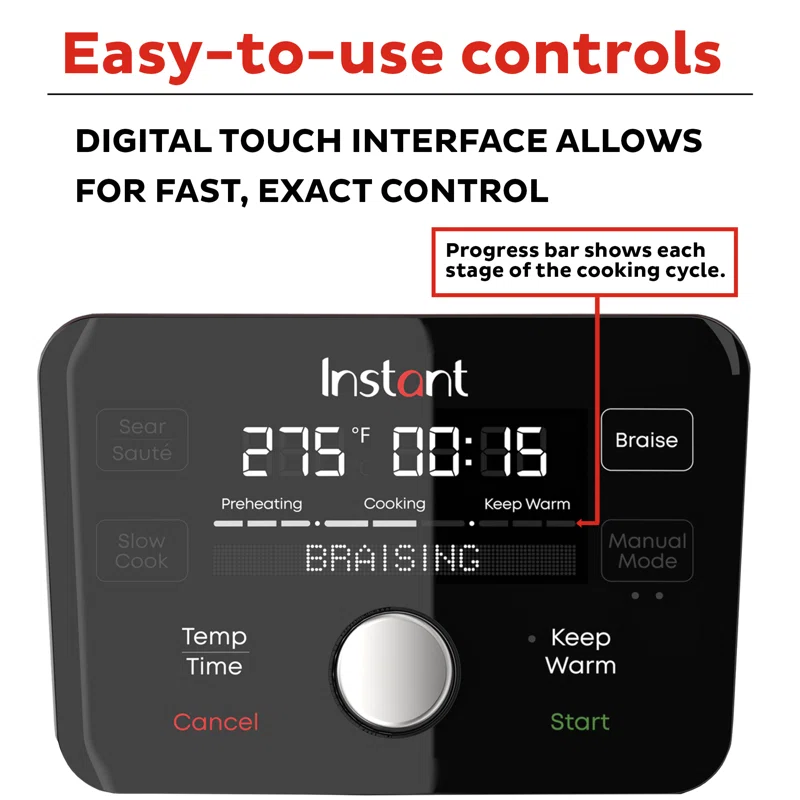 INSTANT 140-0038-01 6 qt. Red Enameled Cast Iron Precision Electric Dutch Oven Multi-Cooker with Lid