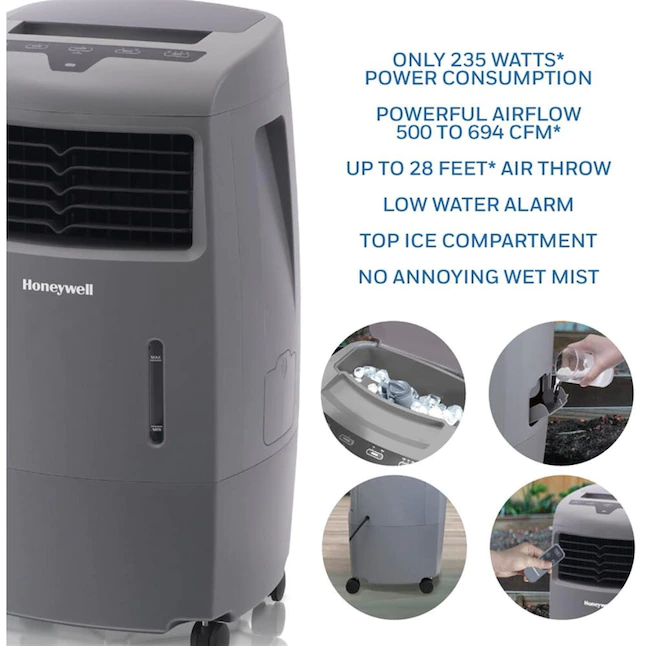 Honeywell CO25AE 500-CFM 4-Speed Indoor/Outdoor Portable Evaporative Cooler for 250-sq ft (Motor Included)