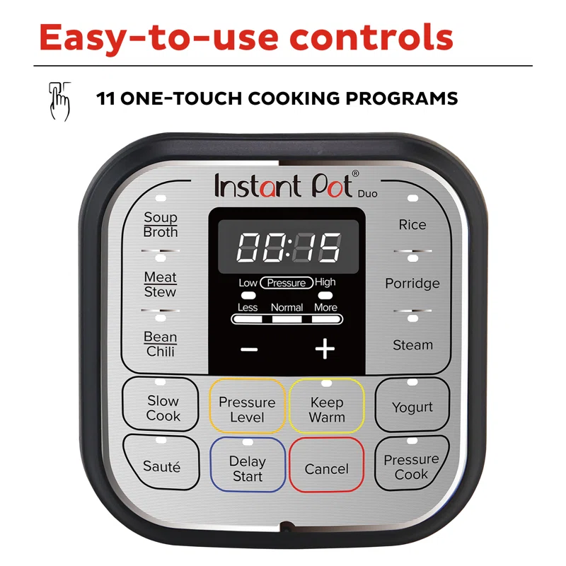Instant Pot 110-0043-01 Duo 7-in-1 Electric Pressure Cooker. Slow Cooker. Rice Cooker. Steamer. Sauté. Yogurt Maker. Warmer & Sterilizer. Includes App With Over 800 Recipes. Stainless Steel. 3 Quart
