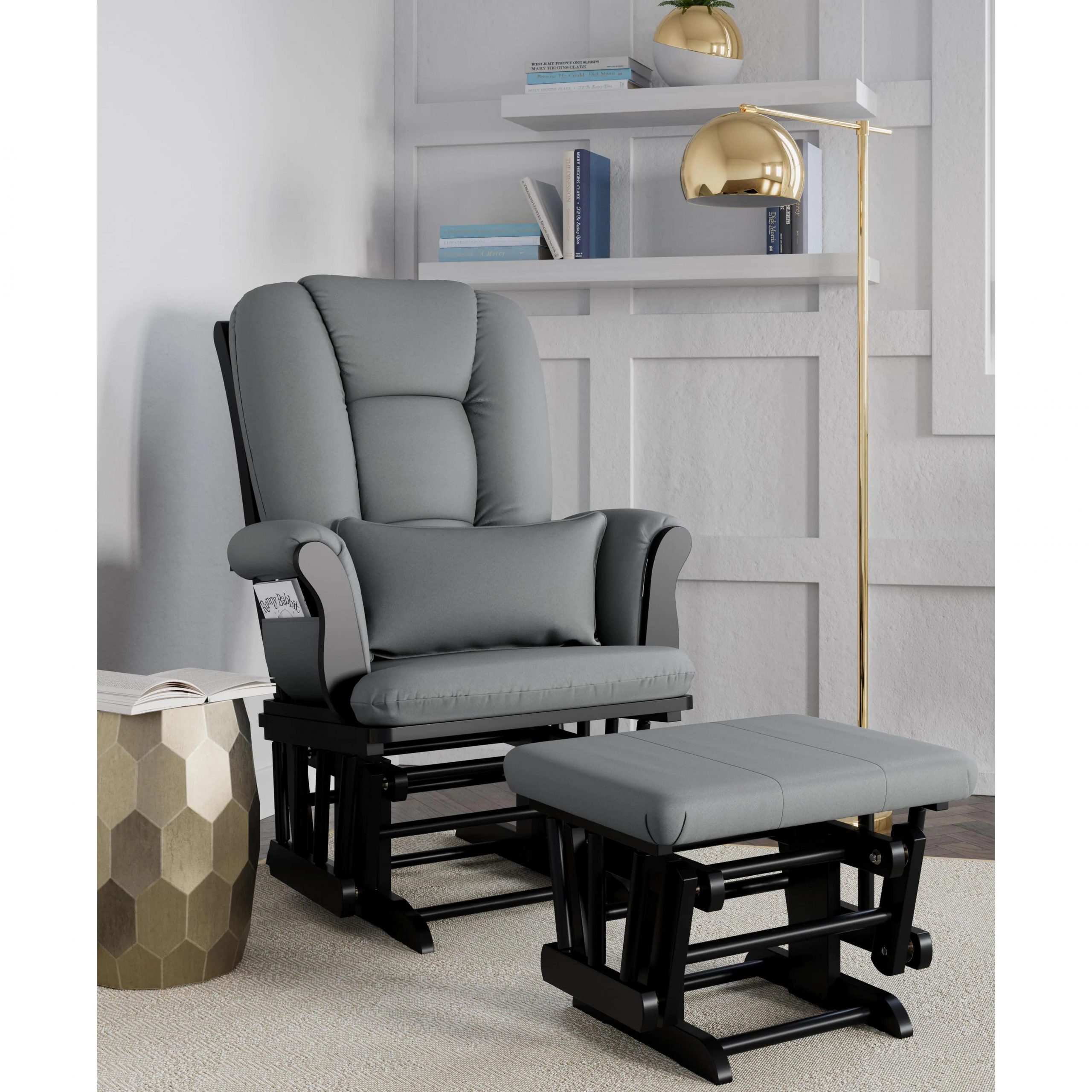 Storkcraft Tuscany Gray Cushion Black Glider and Ottoman Set