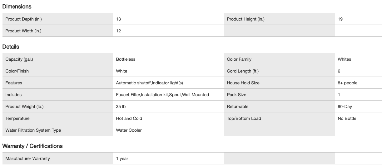 Avalon Countertop Self Cleaning Touchless Bottle less Water Cooler Dispenser. White