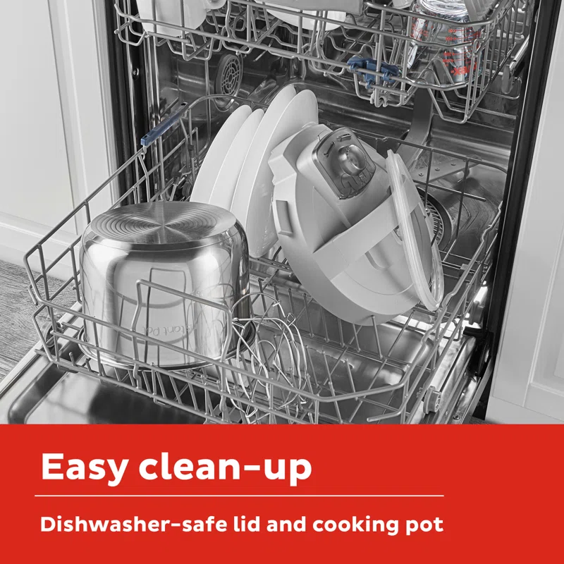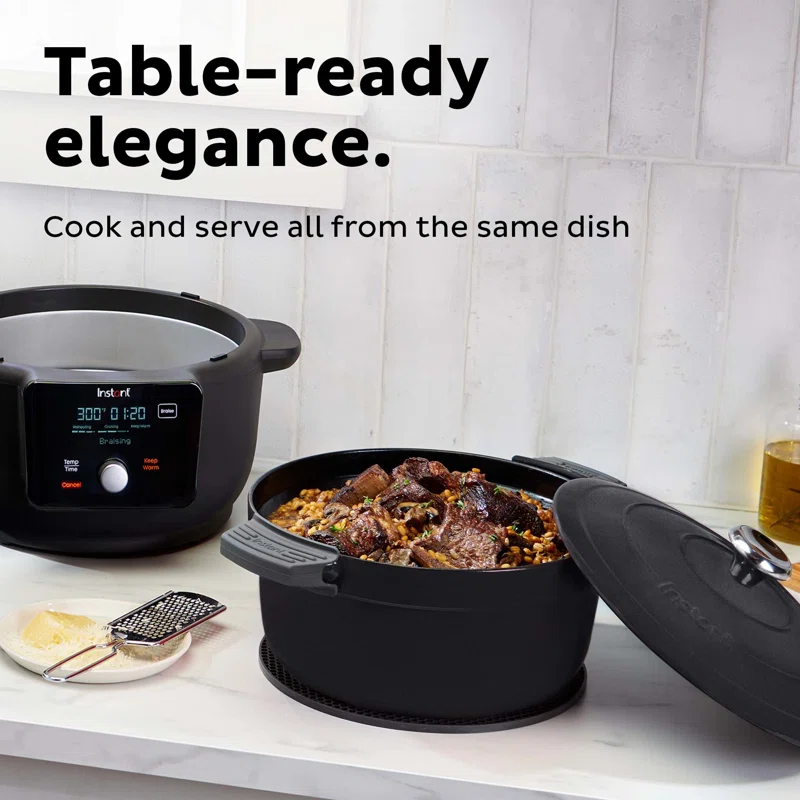 Instant 140-0051-01 Electric Round Dutch Oven. 6-Quart 1500W. From the Makers of Instant Pot. 5-in-1: Braise. Slow Cook. Sear/Sauté. Cooking Pan. Food Warmer. Enameled Cast Iron. Included Recipe Book. Black
