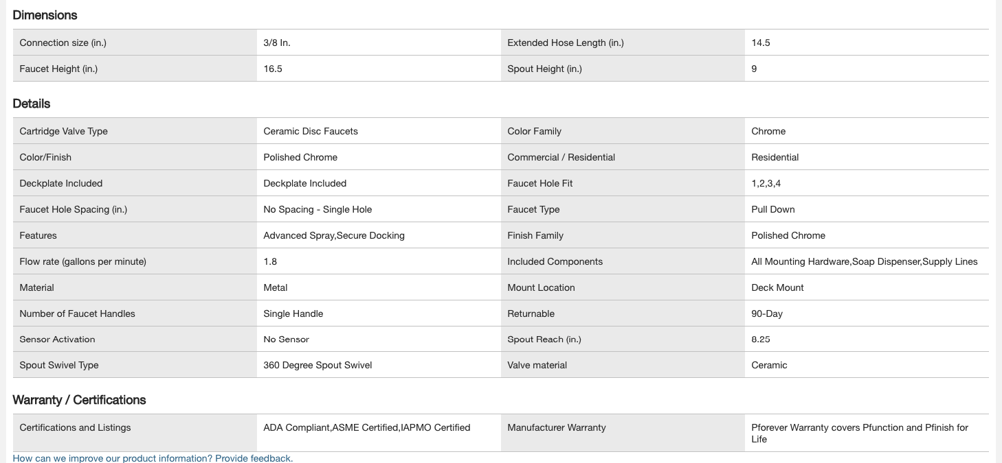 Pfister Barulli Single Handle Pull Down Sprayer Kitchen Faucet with Deckplate Included