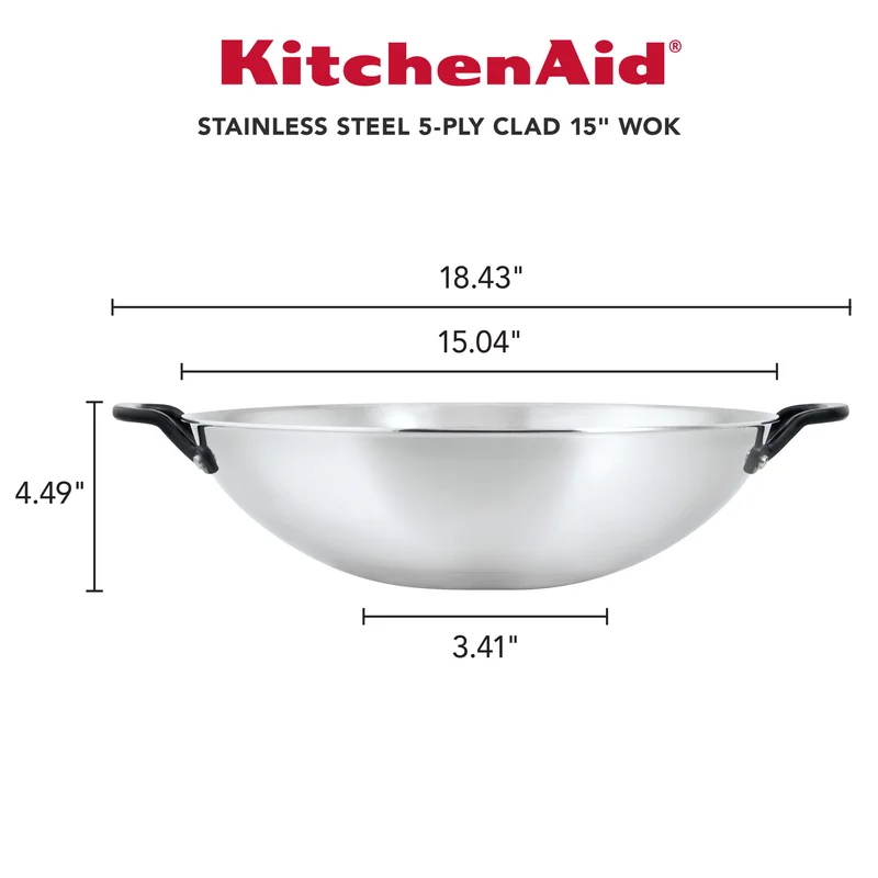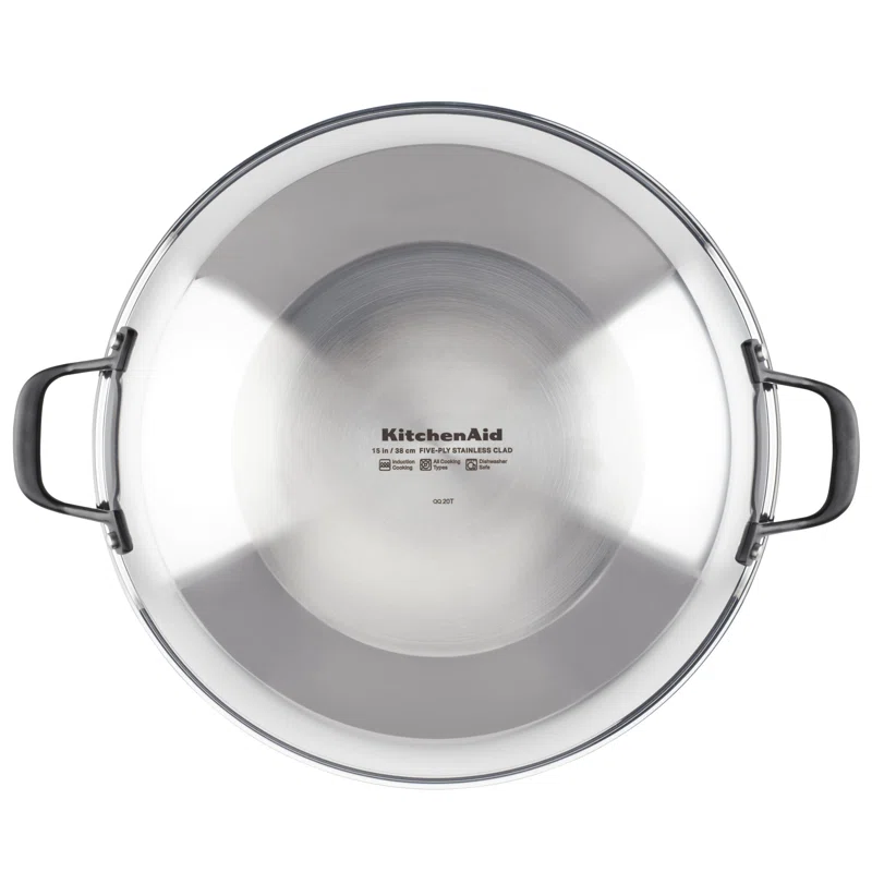 KitchenAid 30008 5-Ply Clad Polished Stainless Steel Wok.15 Inch
