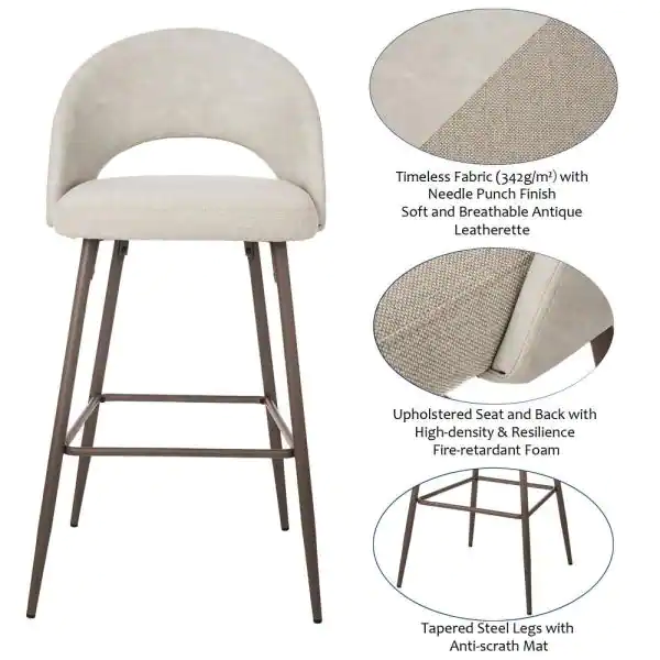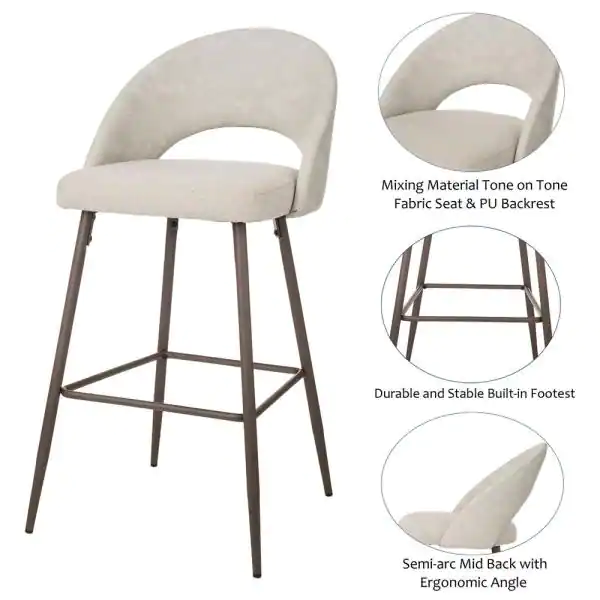Glitzhome Pale Grey Fabic/Leatherette Bar Stool with Tapered Metal Legs (Set of 2)