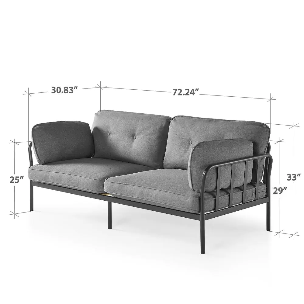 Zinus Courtney 3-Seat Black Metal Sofa