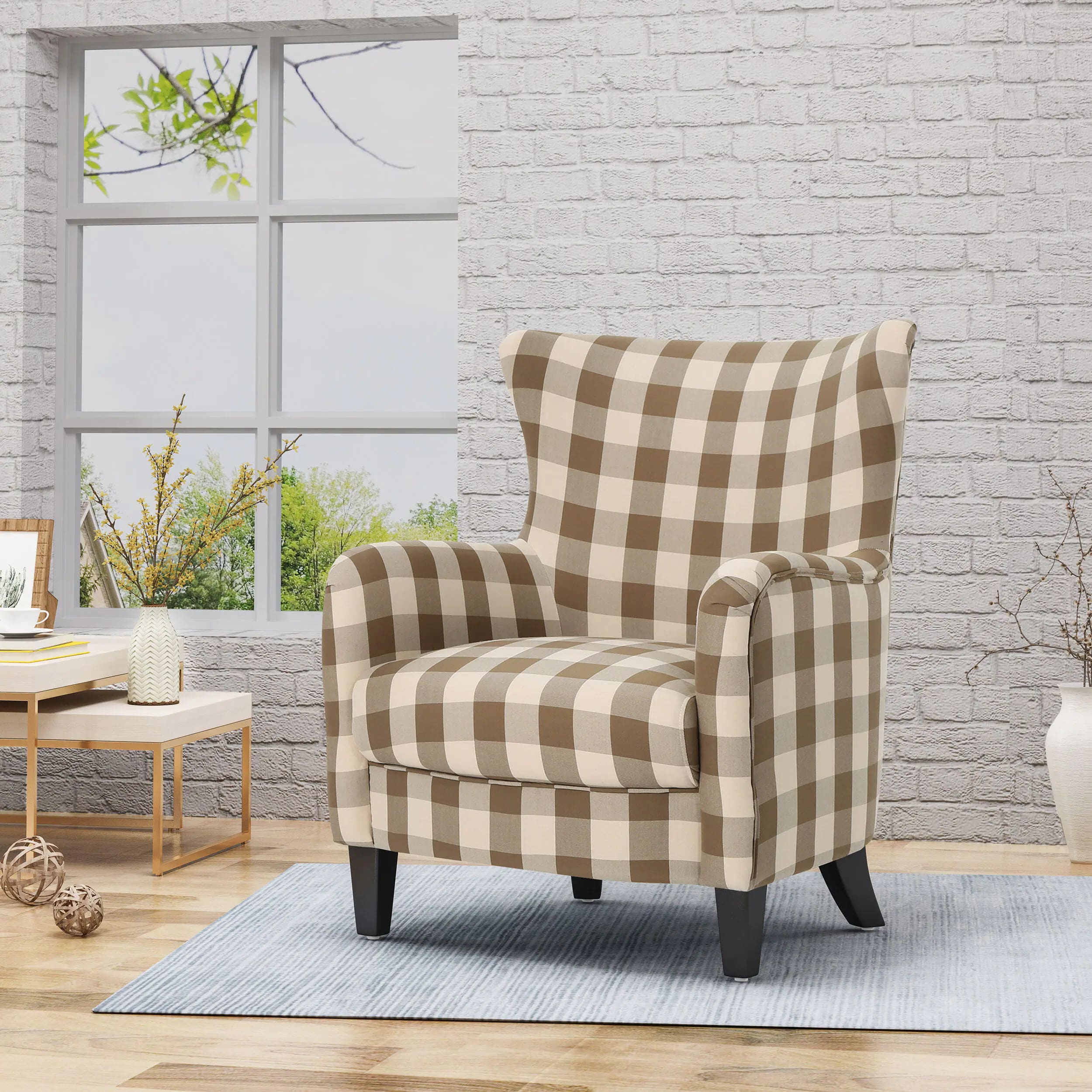 Noble House Arabella Brown Checkerboard Fabric Club Chair