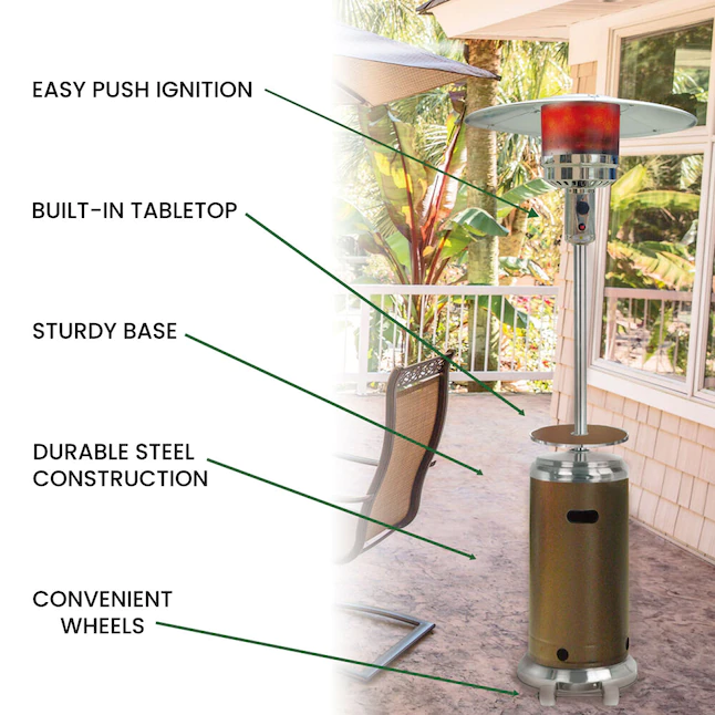 Hanover 48000-BTU Bronze/Stainless Steel Floorstanding Liquid Propane Patio Heater (HAN002BRSS)