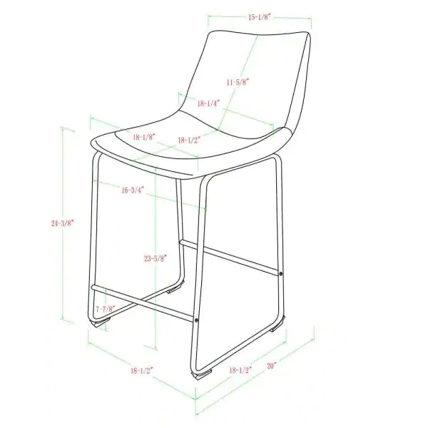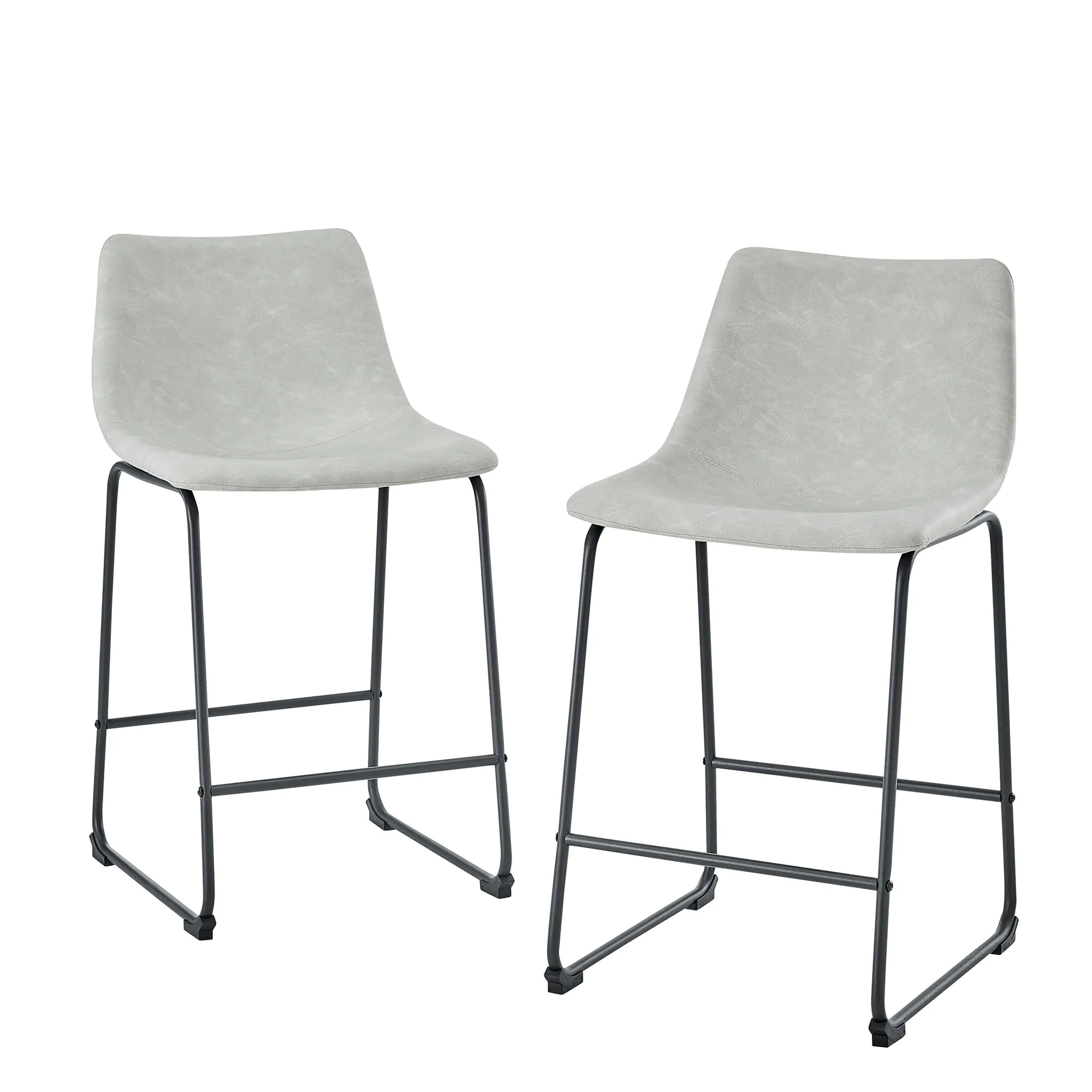 Walker Edison Wasatch 24 in. Frame Counter Height Bar Stool. Leather Seat (Set of 2)