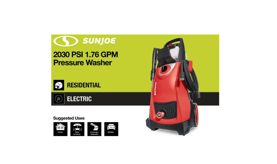 Sun Joe SPX3000 2030 MAX PSI 1.76 GPM 14.5 Amp Electric Pressure Washer. Red