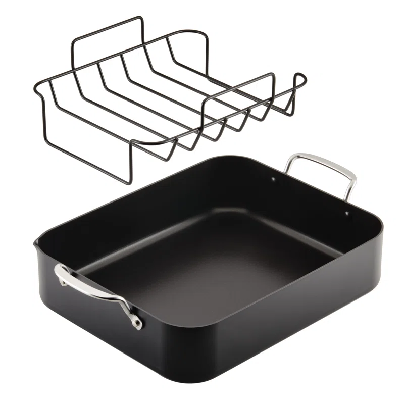 KitchenAid 84806 Hard Anodized Roasting Pan/Roaster with Removable Rack. 13 Inch x 15.75 Inch. Matte Black
