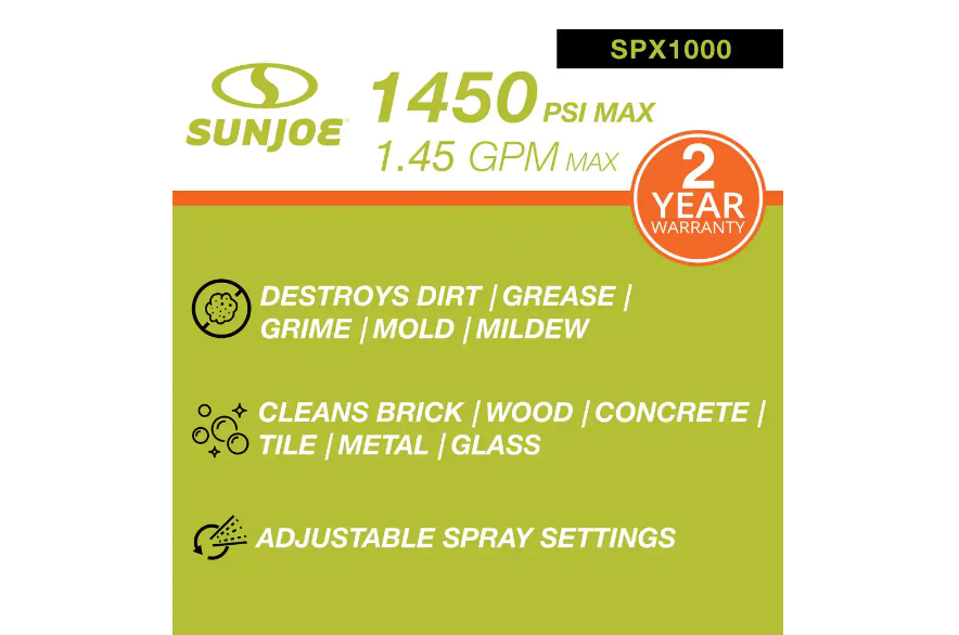 Sun Joe SPX1000 1450 PSI 1.45 GPM 11.5 Amp Electric Pressure Washer