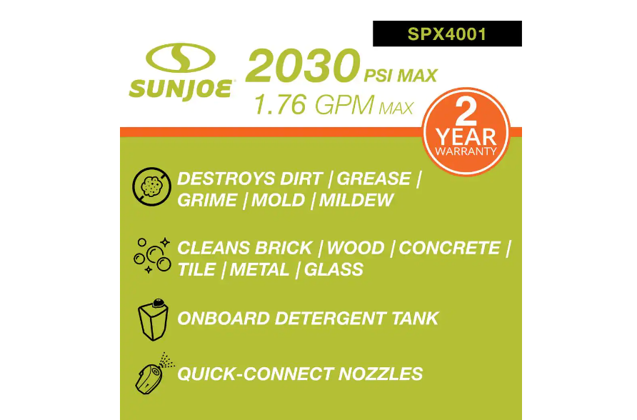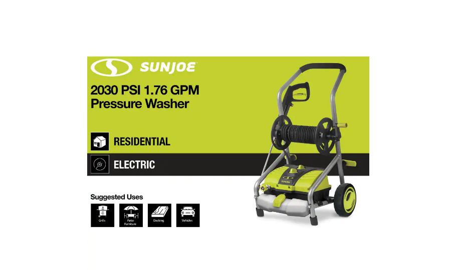 Sun Joe SPX4001 2030 PSI 1.76 GPM 14.5 Amp Electric Pressure Washer with Pressure-Select Technology and Hose Reel