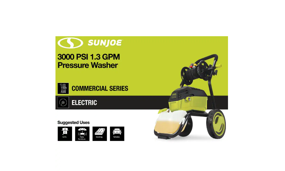 Sun Joe SPX4601 3000 PSI MAX 1.30 GPM 14.5 Amp High Performance Electric Pressure Washer with Hose Reel