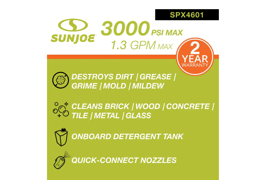 Sun Joe SPX3000 2800 MAX PSI 1.3 GPM 14.5 Amp Electric Pressure Washer