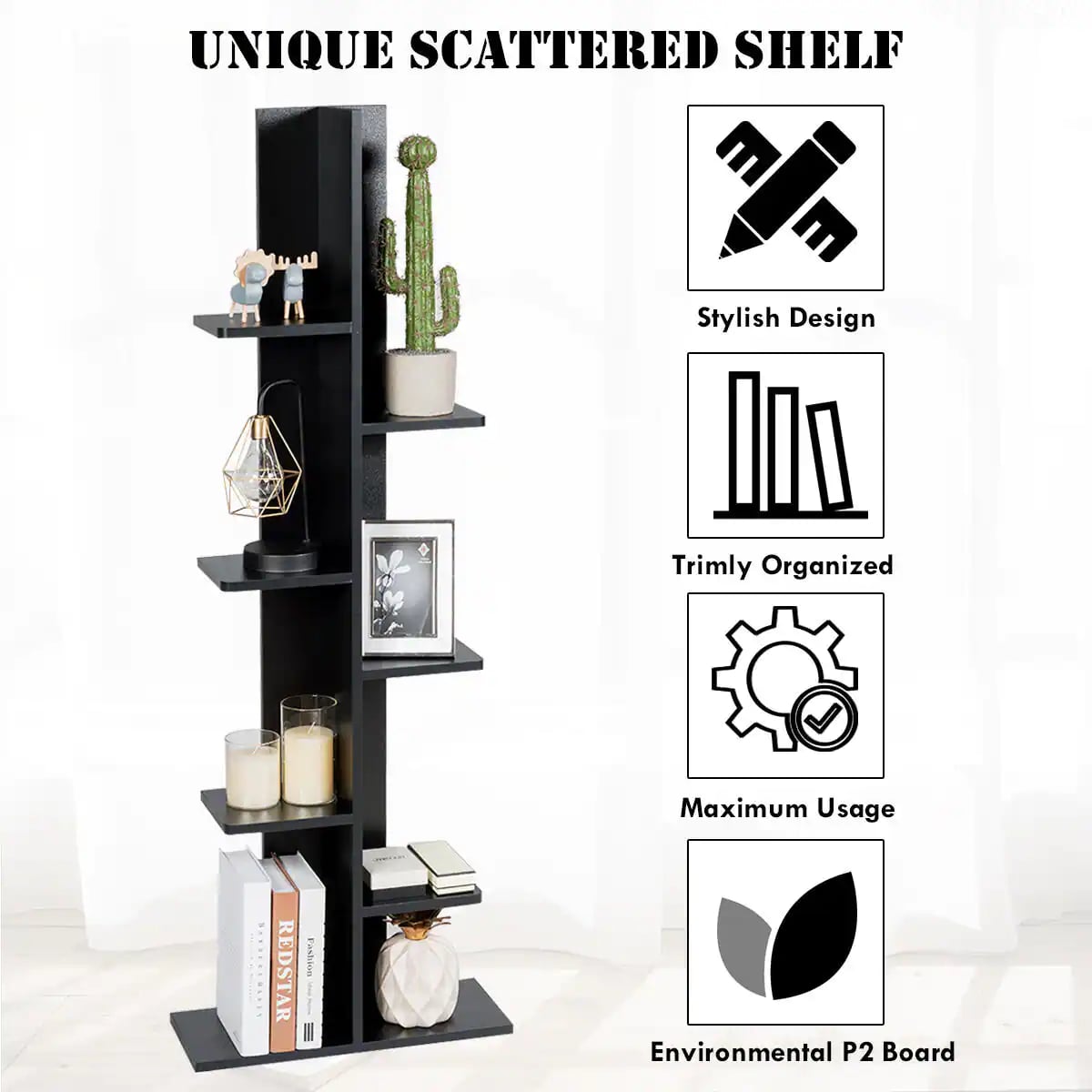 Costway HW57374BK 7-Tier Black Bookshelf Bookcase Plant Display Shelf Rack Storage Holder Wooden