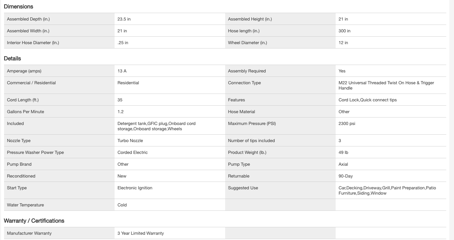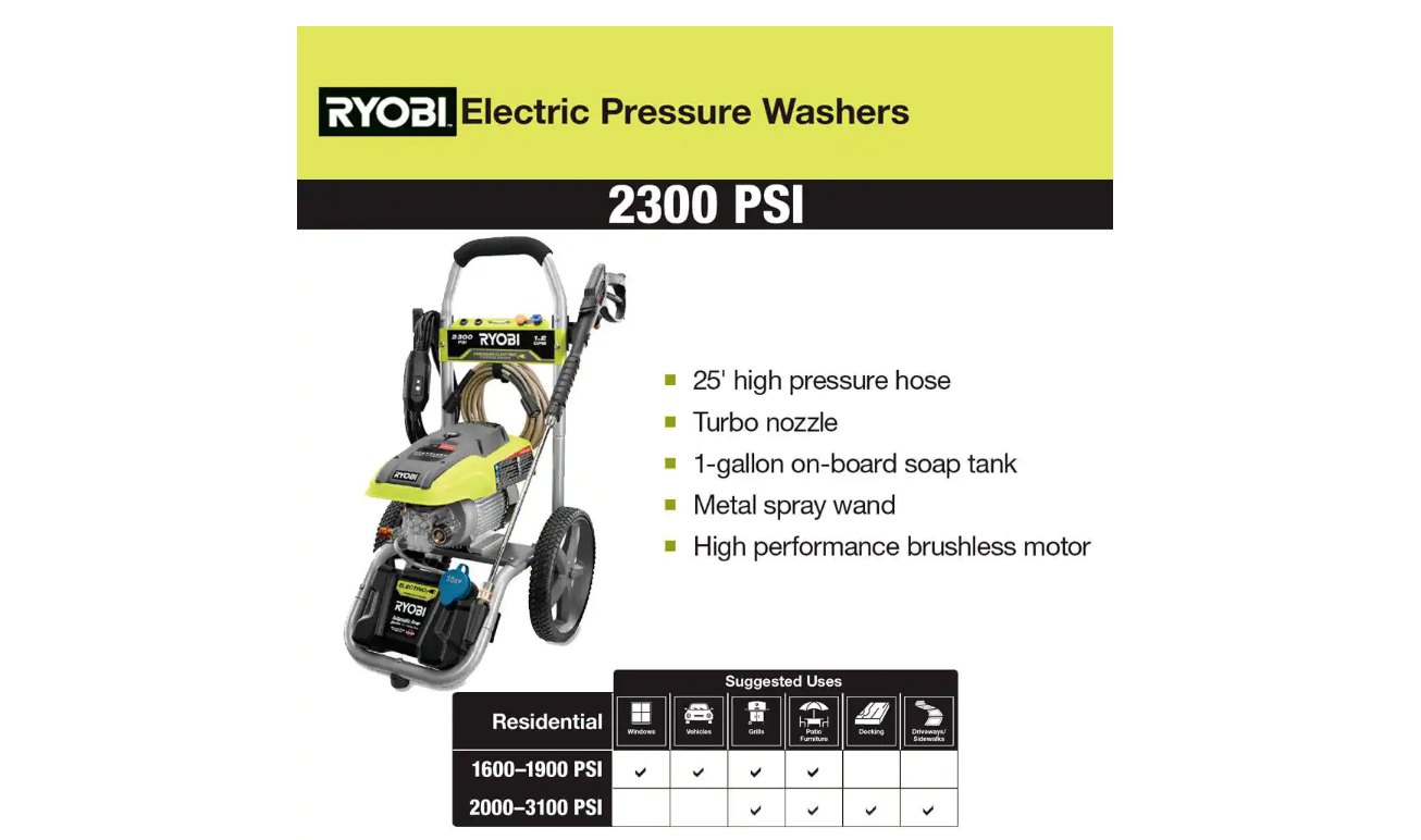 RYOBI RY142300 2300 PSI 1.2 GPM High Performance Electric Pressure Washer