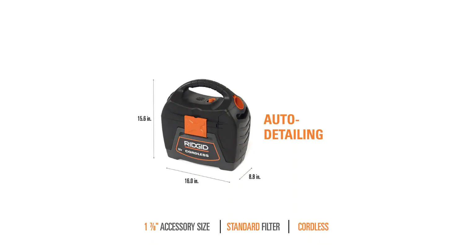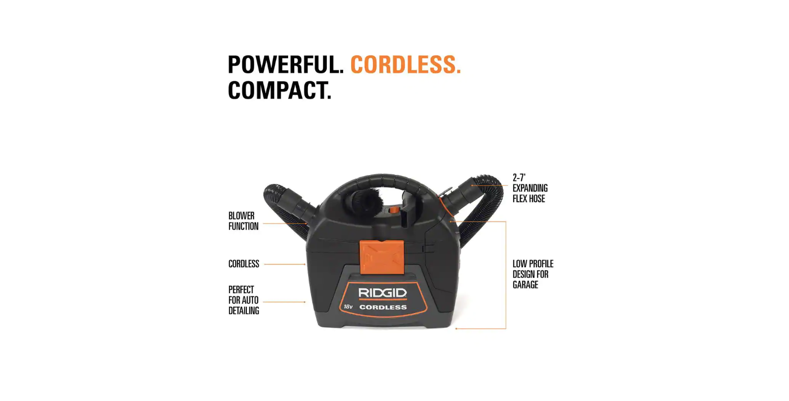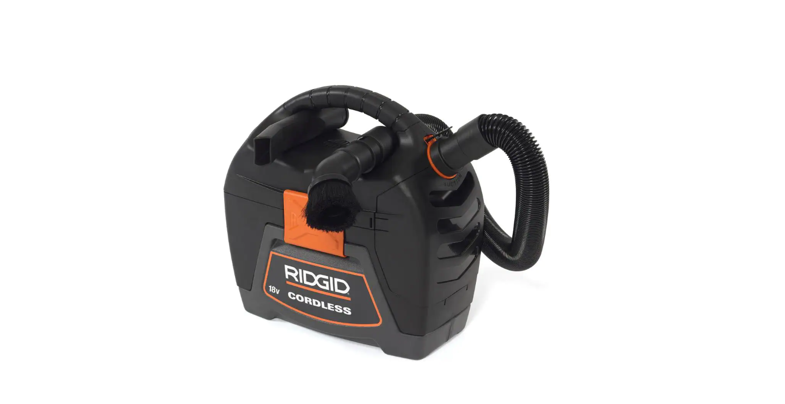 RIDGID WD0319 3 Gal. 18-Volt Cordless Handheld Wet/Dry Shop Vacuum (Tool Only) with Filter. Expandable Hose and Accessories