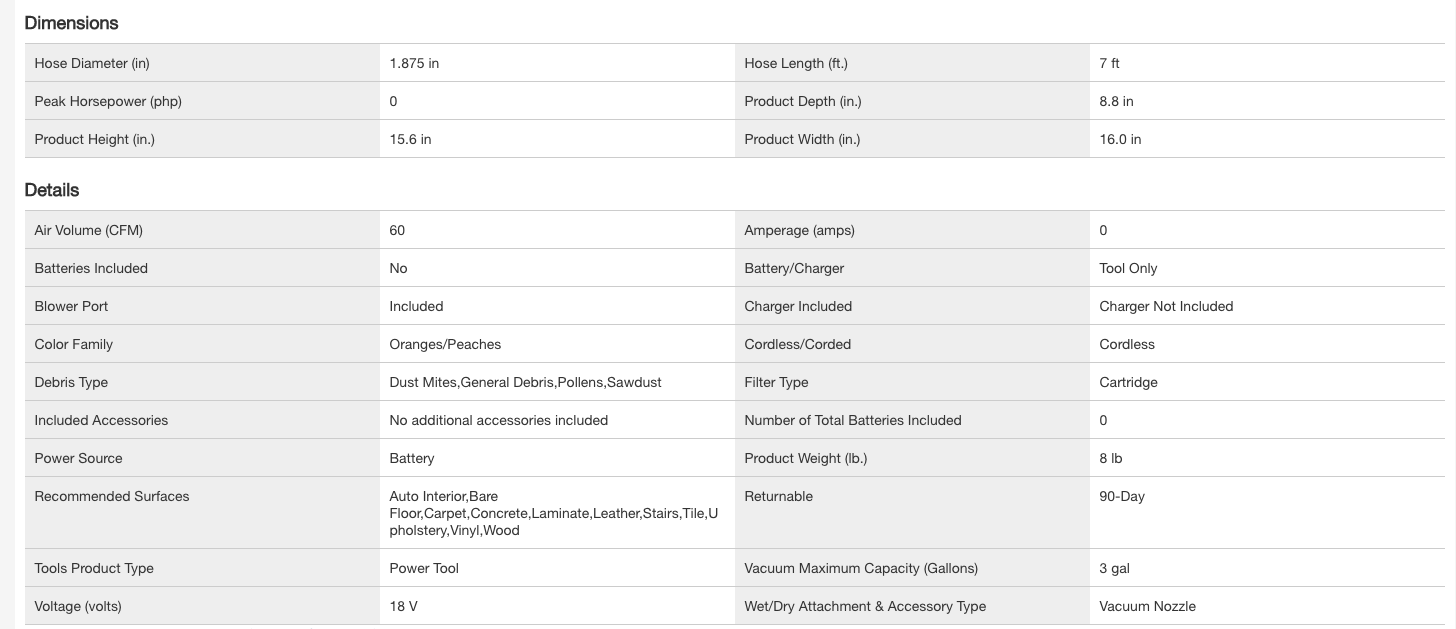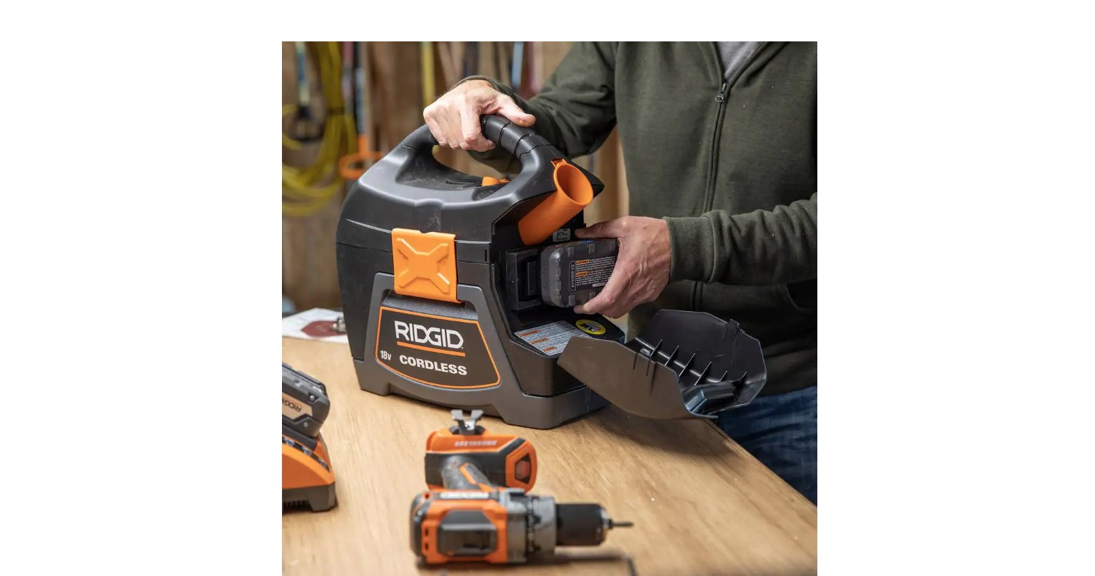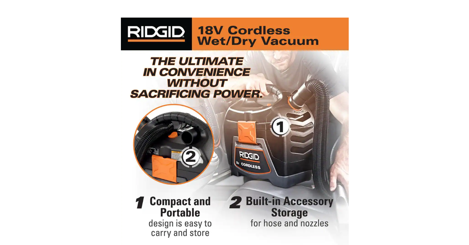 RIDGID WD0319 3 Gal. 18-Volt Cordless Handheld Wet/Dry Shop Vacuum (Tool Only) with Filter. Expandable Hose and Accessories