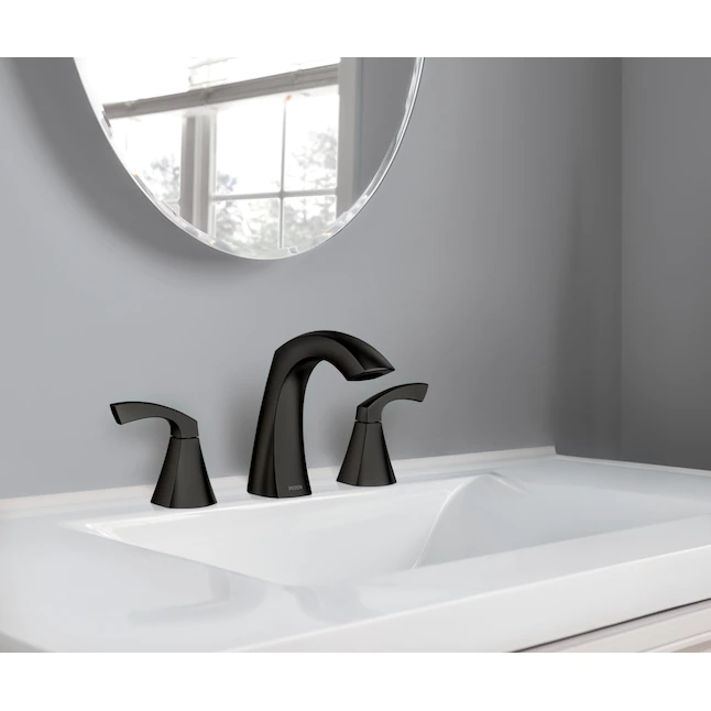 Moen 84504BL Lindor Matte Black 2-handle Widespread High-arc Bathroom Sink Faucet with Drain