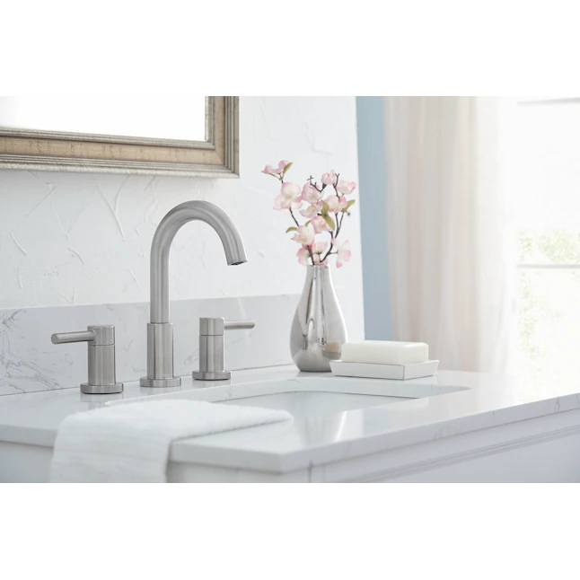 allen + roth Harlow Brushed Nickel Pvd 2-handle Widespread WaterSense High-arc Bathroom Sink Faucet with Drain (67693W-6104)