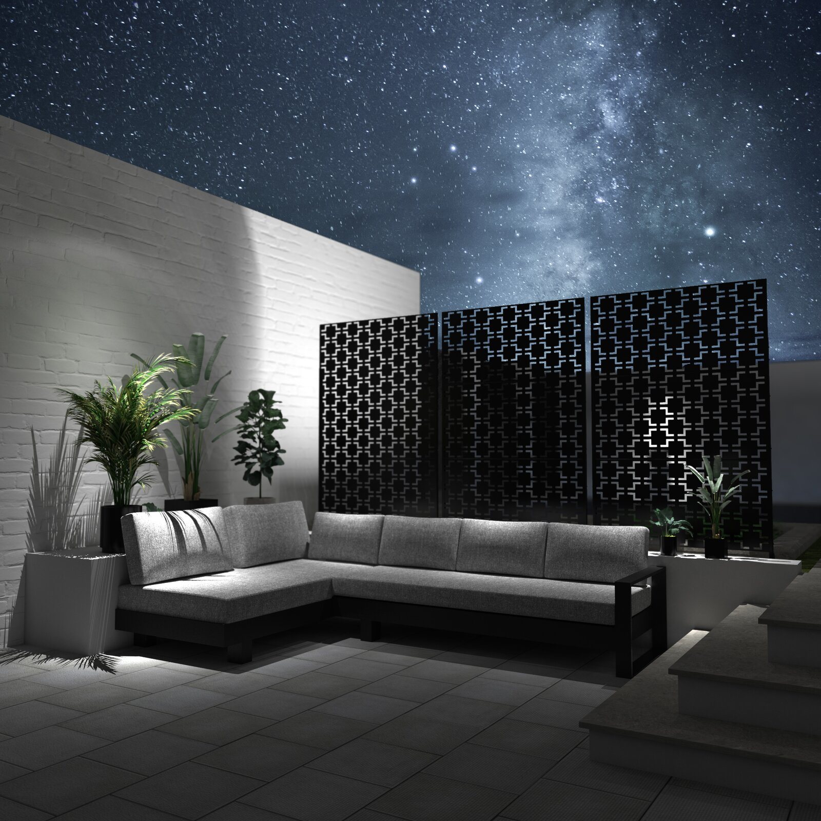6.33 ft. H x 3.93 ft. W Laser Cut Metal Privacy Screen. 3 panels