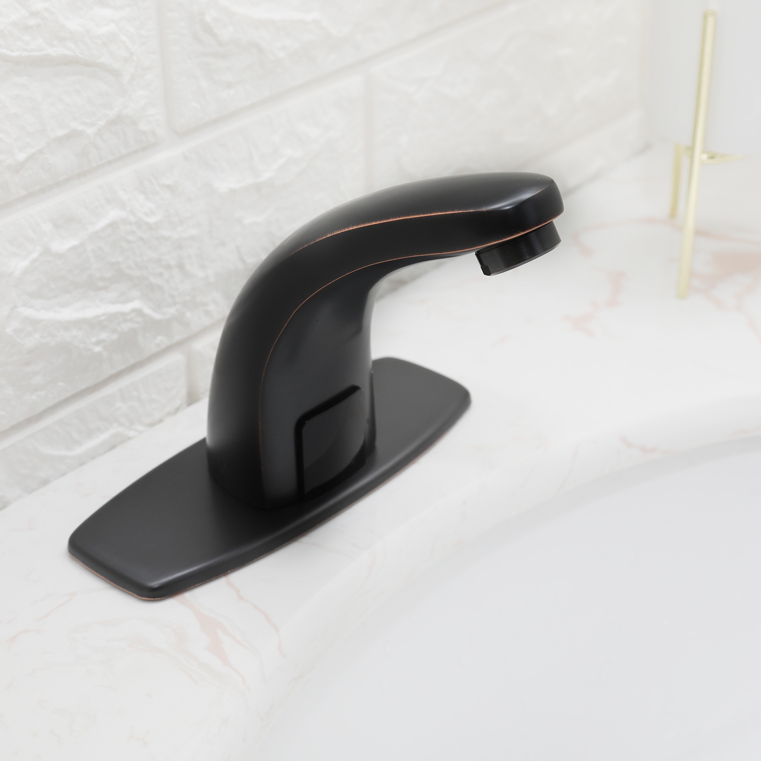 BWE A-918102-B Automatic Sensor Touchless Bathroom Sink Faucet With Deck Plate In Matte Black