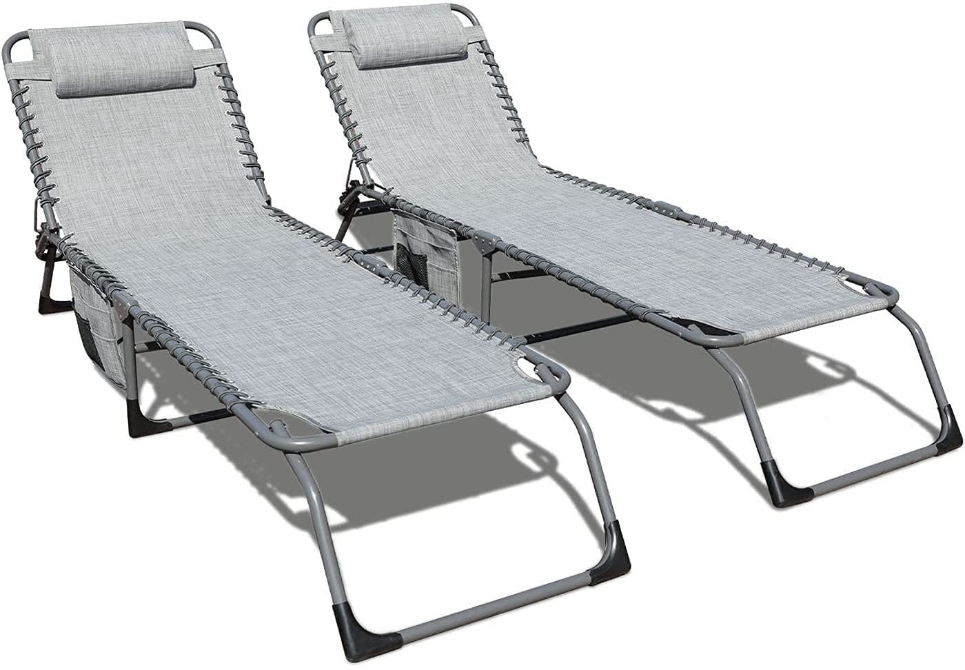 GOLDSUN 2 Pieces Outdoor Chaise Lounge Set with Detachable Pocket and Pillow. Portable Adjustable Patio Sun Lounge Chair Set for Garden.Beach. Sunbathing. Pool. Deck.Camping and Poolside-Beige