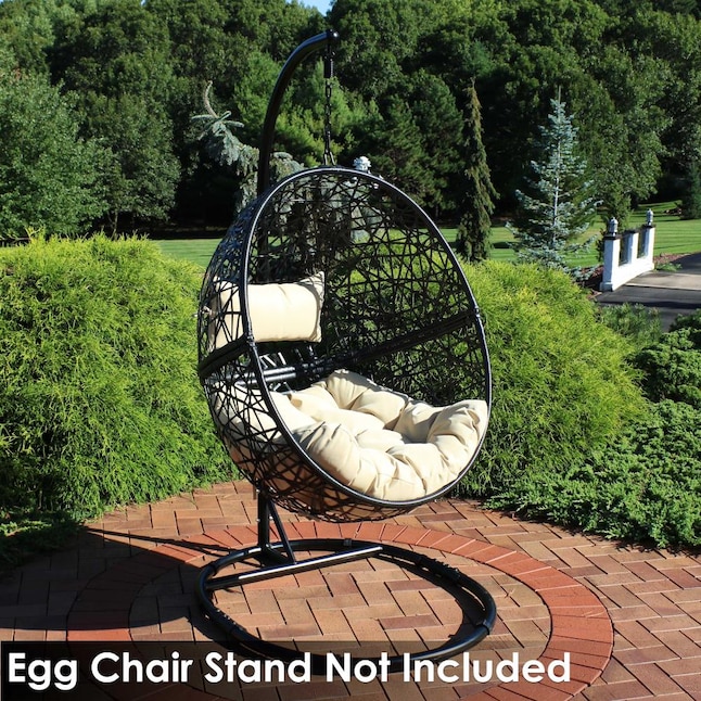 Sunnydaze Decor TF-597 Rattan Black Metal Frame Hanging Conversation Chair(s) with Off-white Cushioned Seat