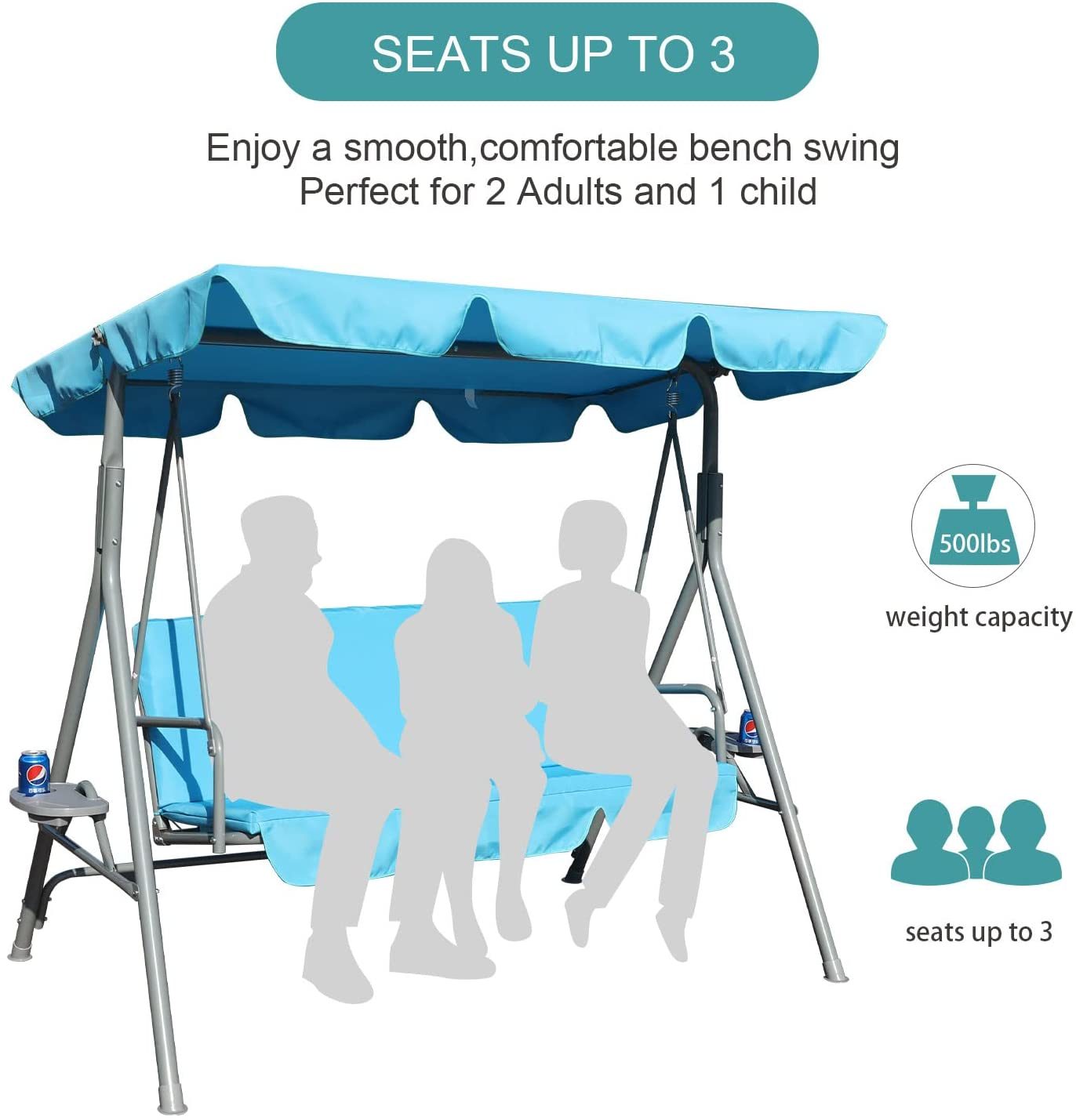 GOLDSUN Durable Outdoor Patio Swing with Side Table Weather Resistant Canopy Swinging Chair with Removable Cushion.Suitable for Garden. Poolside. Balcony. Backyard-Beige (BGSW-817)
