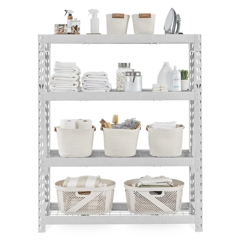 Gladiator GARS604TKW White 4-Tier Heavy Duty Steel Garage Storage Shelving Unit (60 in. W x 72 in. H x 18 in. D)