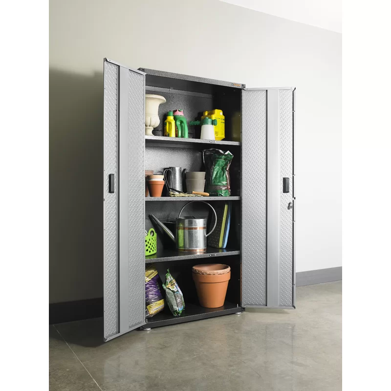 Gladiator GALG36KDYG Ready-to-Assemble Steel Freestanding Garage Cabinet in Silver Tread (36 in. W x 72 in. H x 18 in. D)