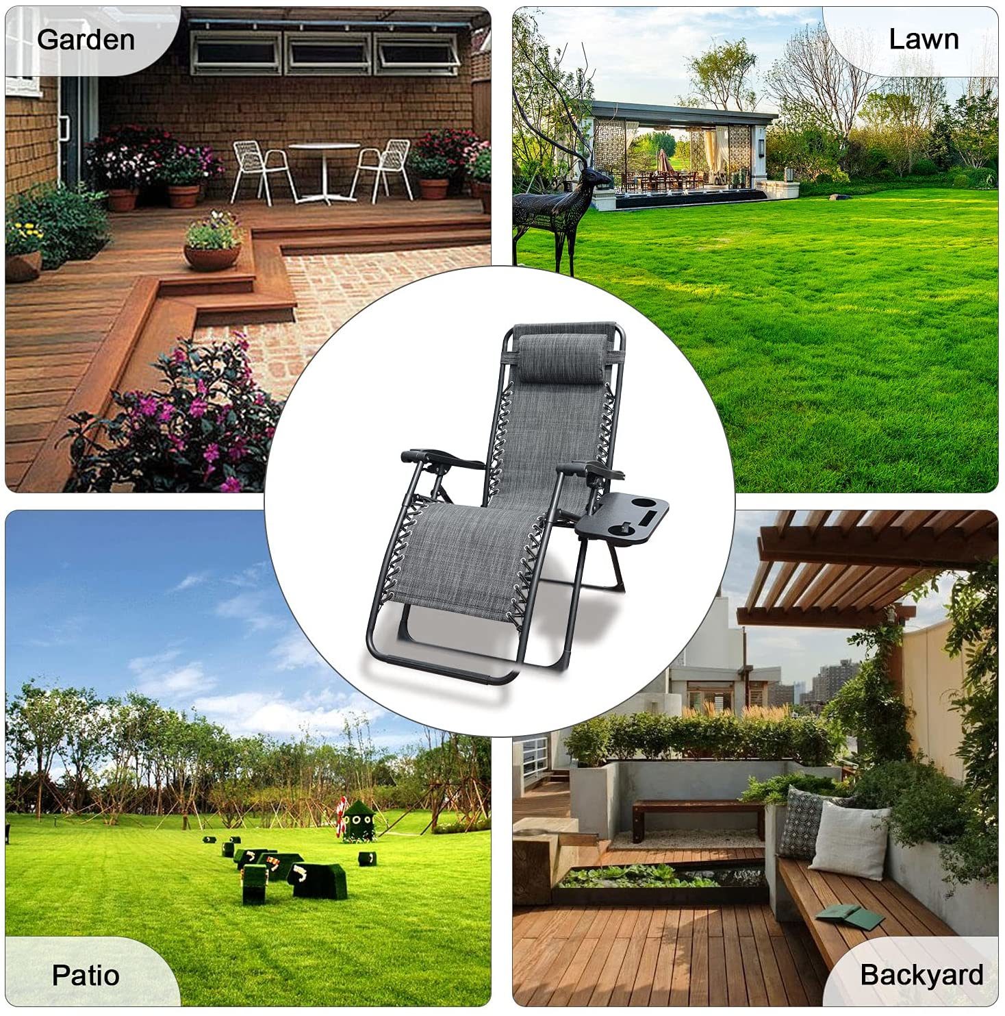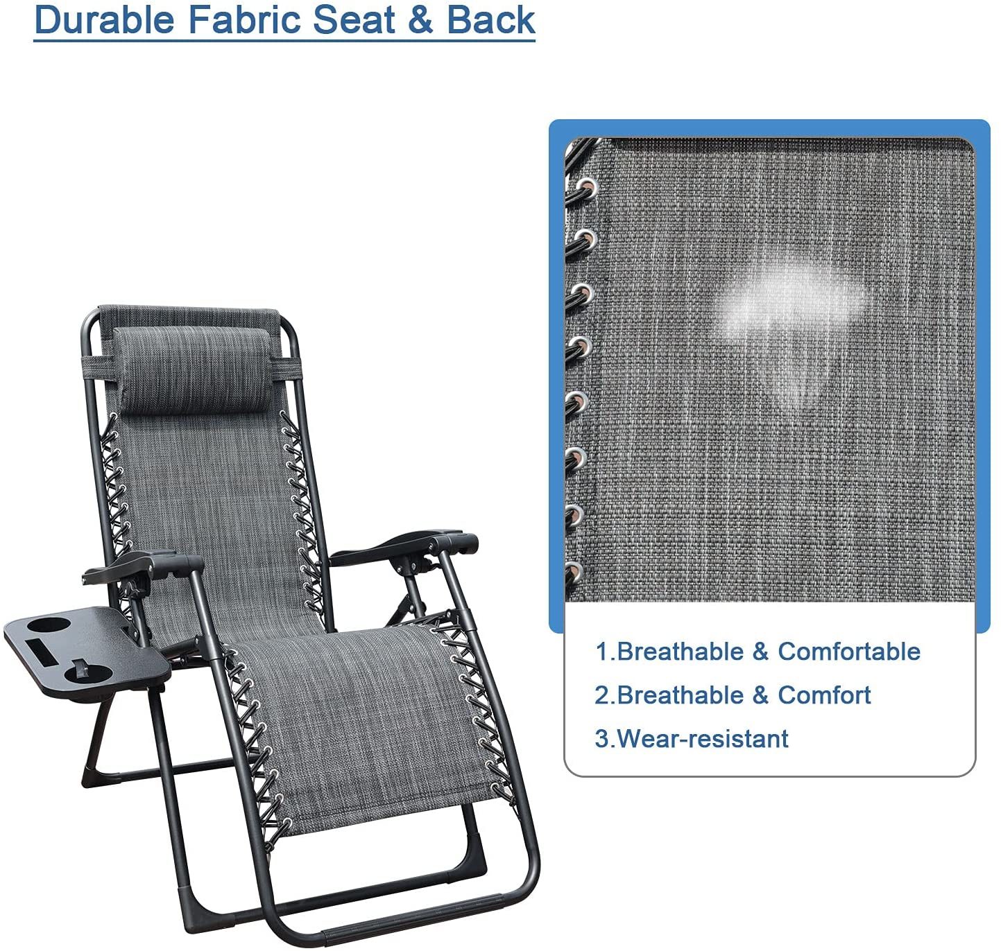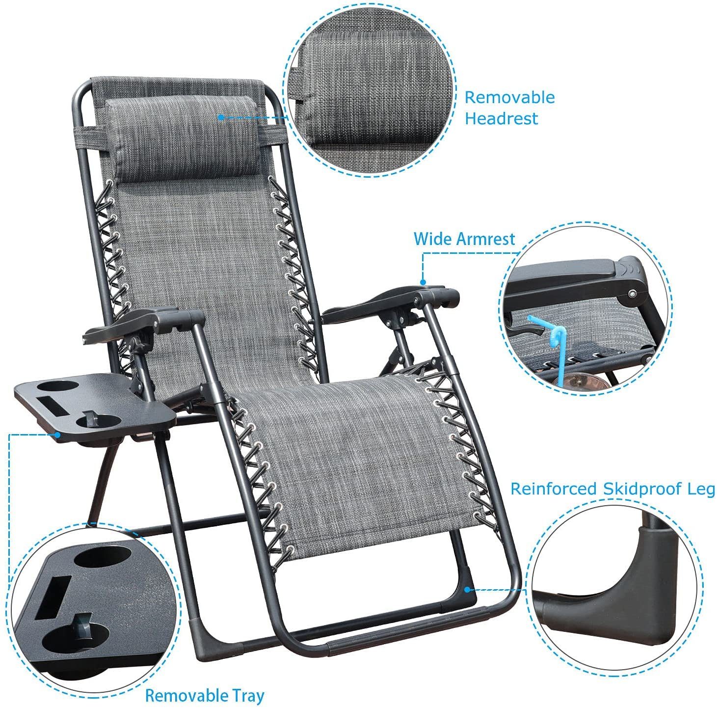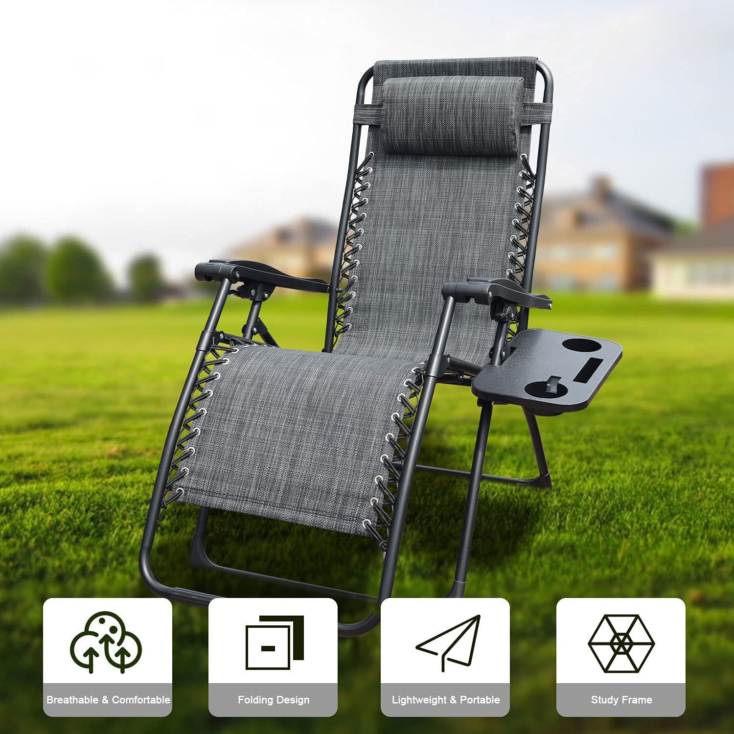 GOLDSUN Zero Gravity Chair Patio Folding Lawn Lounge Chairs Outdoor Foldable Camp Reclining Lounge Chair with sidetable for Backyard Porch Swimming Poolside and Beach Set of 2 (Beige)