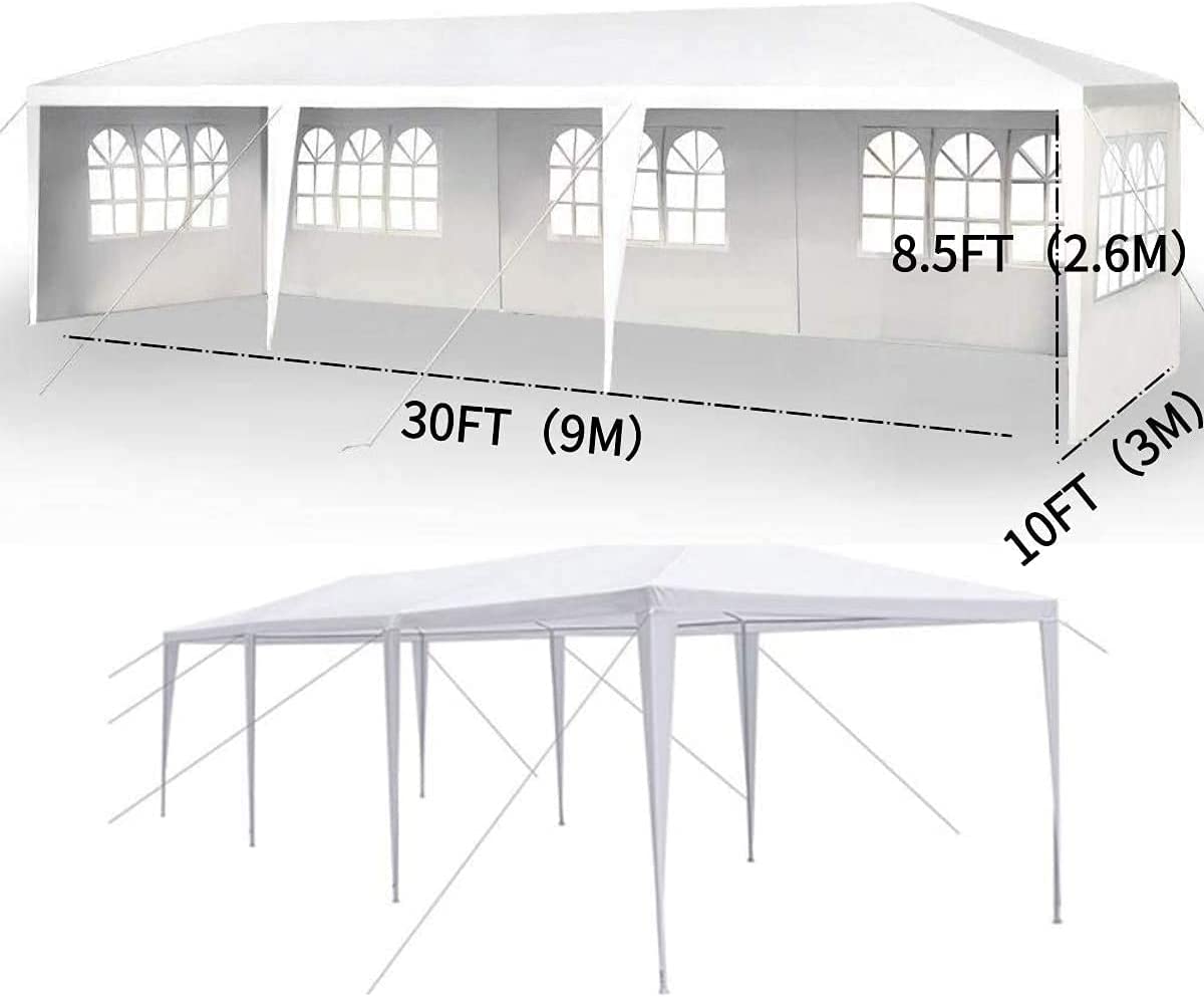 DISCOUNTTODAY Heavy Duty Canopy Event Tent-10-x30′ Outdoor White Gazebo Party Wedding Tent. Sturdy Steel Frame Shelter w/5 Removable Sidewalls Waterproof Sun Snow R