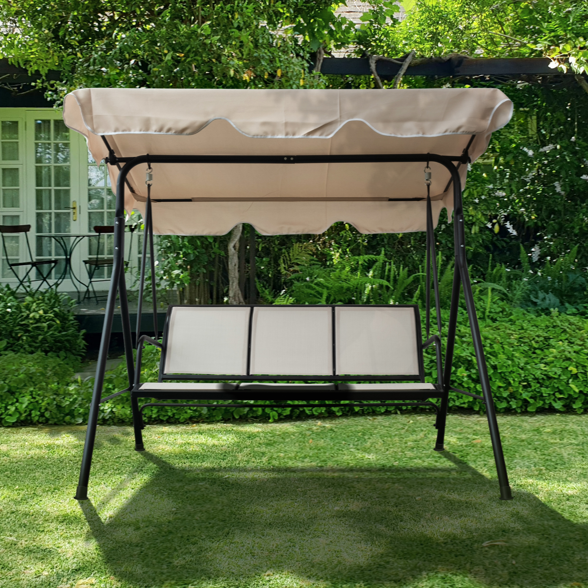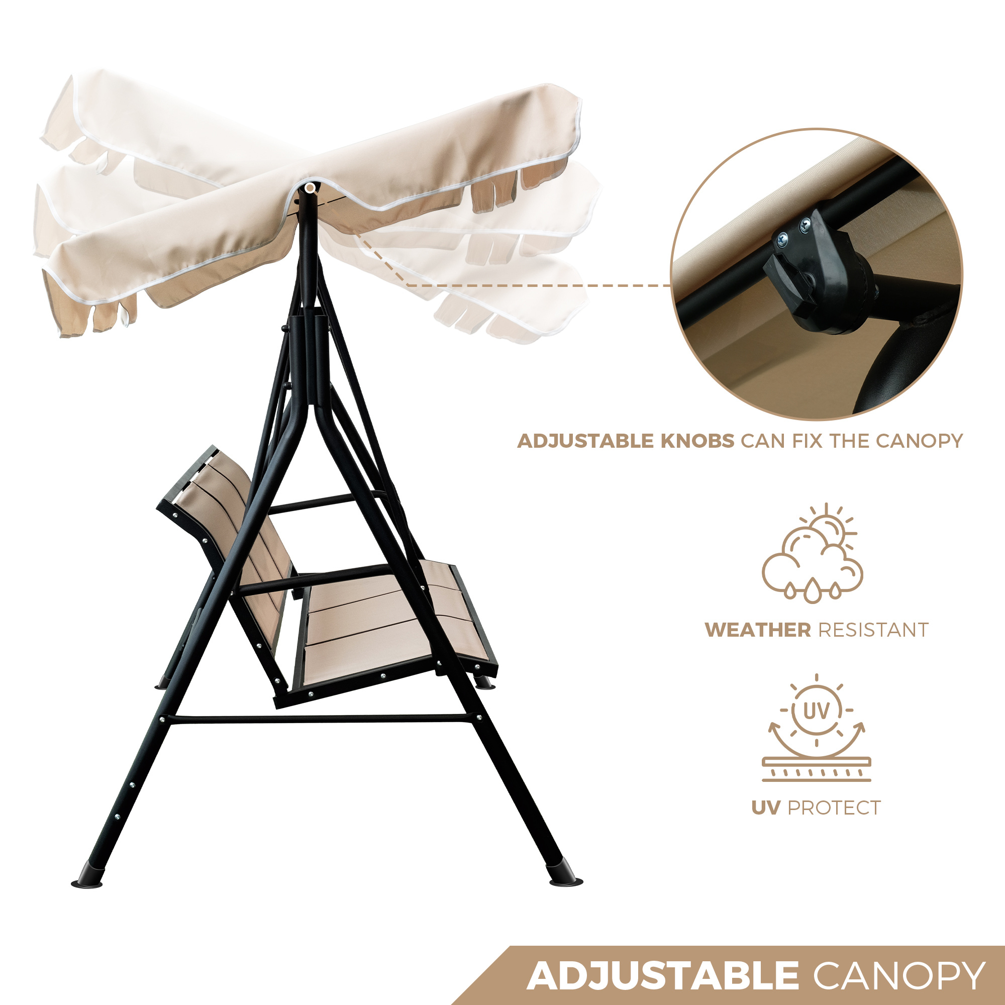 Upland 3-Seater Outdoor Adjustable Canopy Porch Swing Chair for Patio. Garden. Poolside. Balcony w/Armrests. Textilene Fabric. Steel Frame