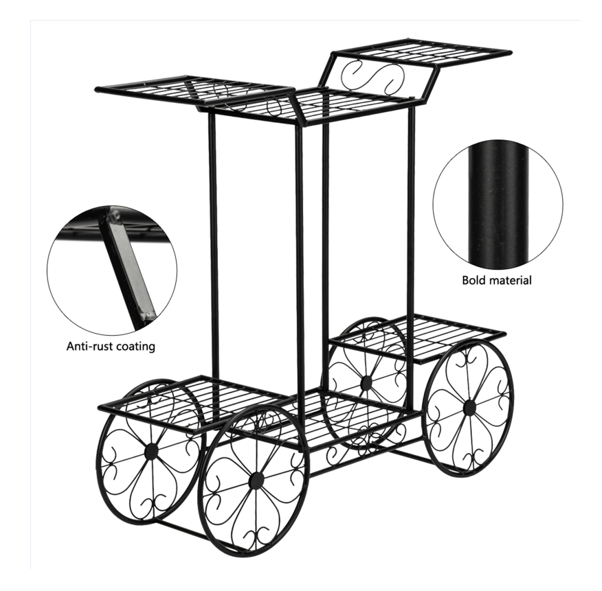 DISCOUNTTODAY Artisasset Garden Cart Stand & Flower Pot Plant Holder Display Rack. 6 Tiers. Parisian Style - Perfect for Home. Garden. Patio Black RT