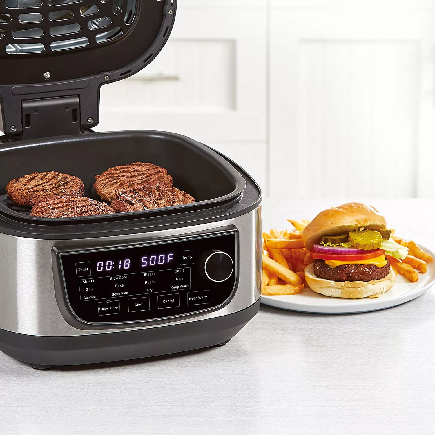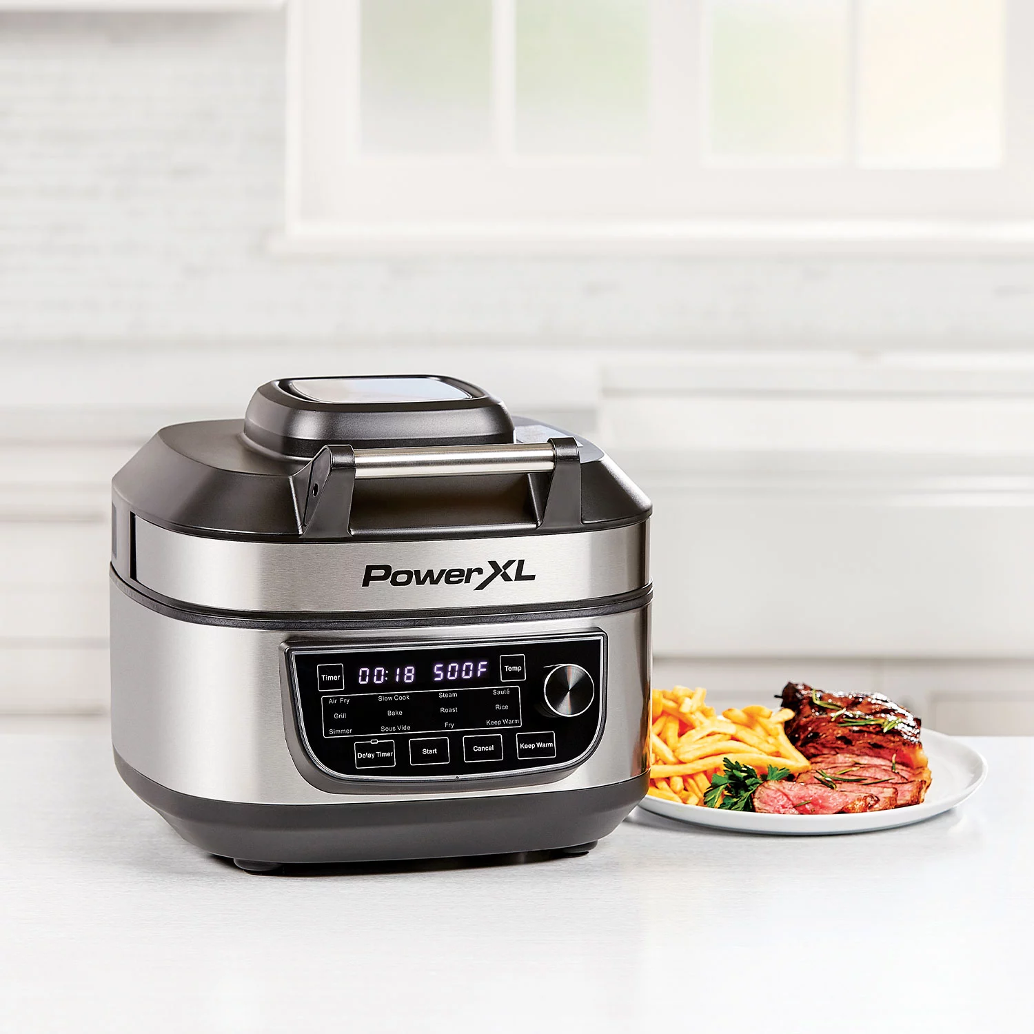 PowerXL Grill Air Fryer Combo 6 QT 12-in-1 Indoor Grill. Air Fryer. Slow Cooker. Roast. Bake. 1550-Watts. Stainless Steel Finish (Standard)