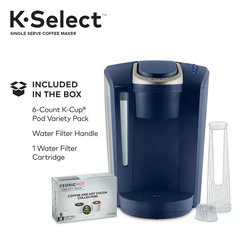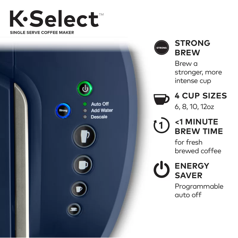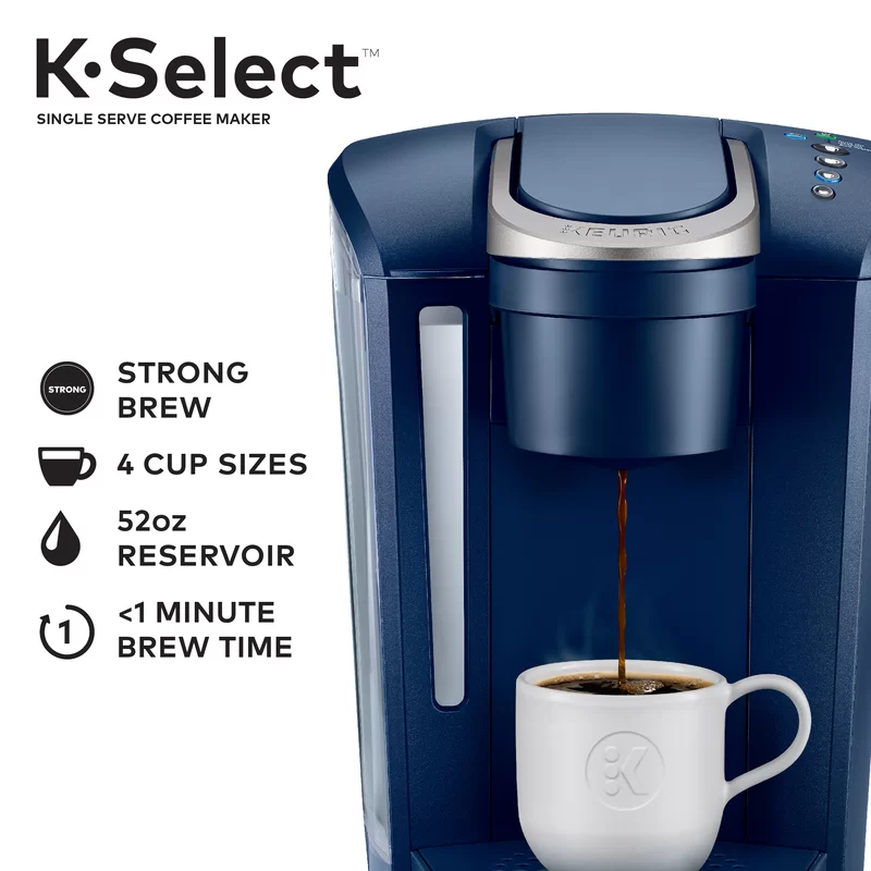 Keurig K-Select Coffee Maker. Single Serve K-Cup Pod Coffee Brewer. With Strength Control and Hot Water On Demand. Matte Navy