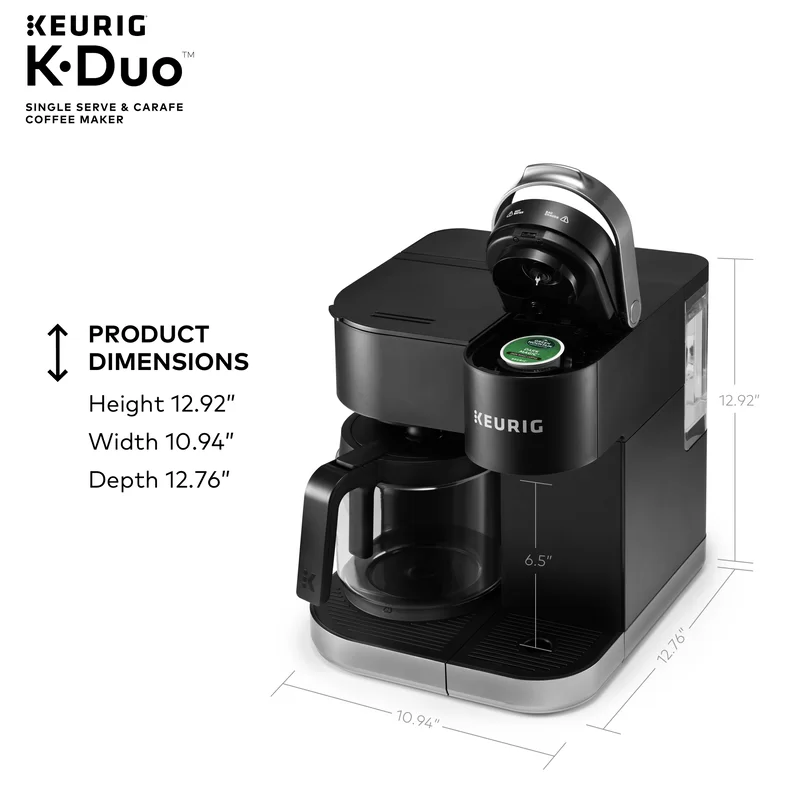 Keurig K-Duo Coffee Maker. Single Serve and 12-Cup Carafe Drip Coffee Brewer. Compatible with K-Cup Pods and Ground Coffee. Black