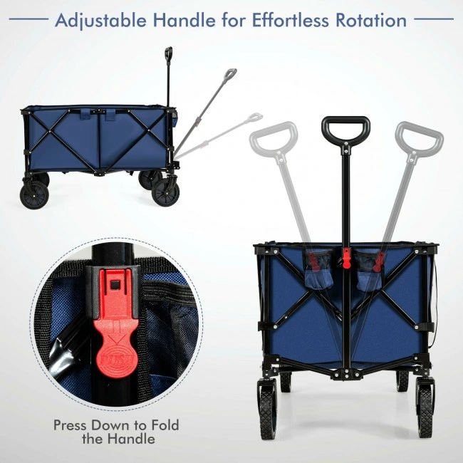 Outdoor Folding Wagon Cart with Adjustable Handle and Universal Wheels. Navy 11″ x 9.5″ x 24.5″