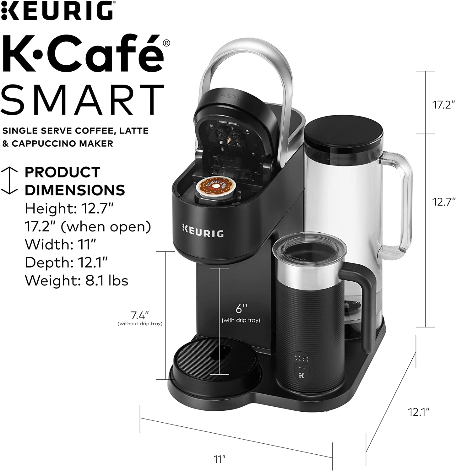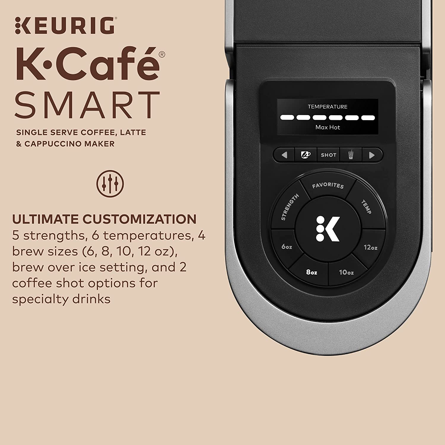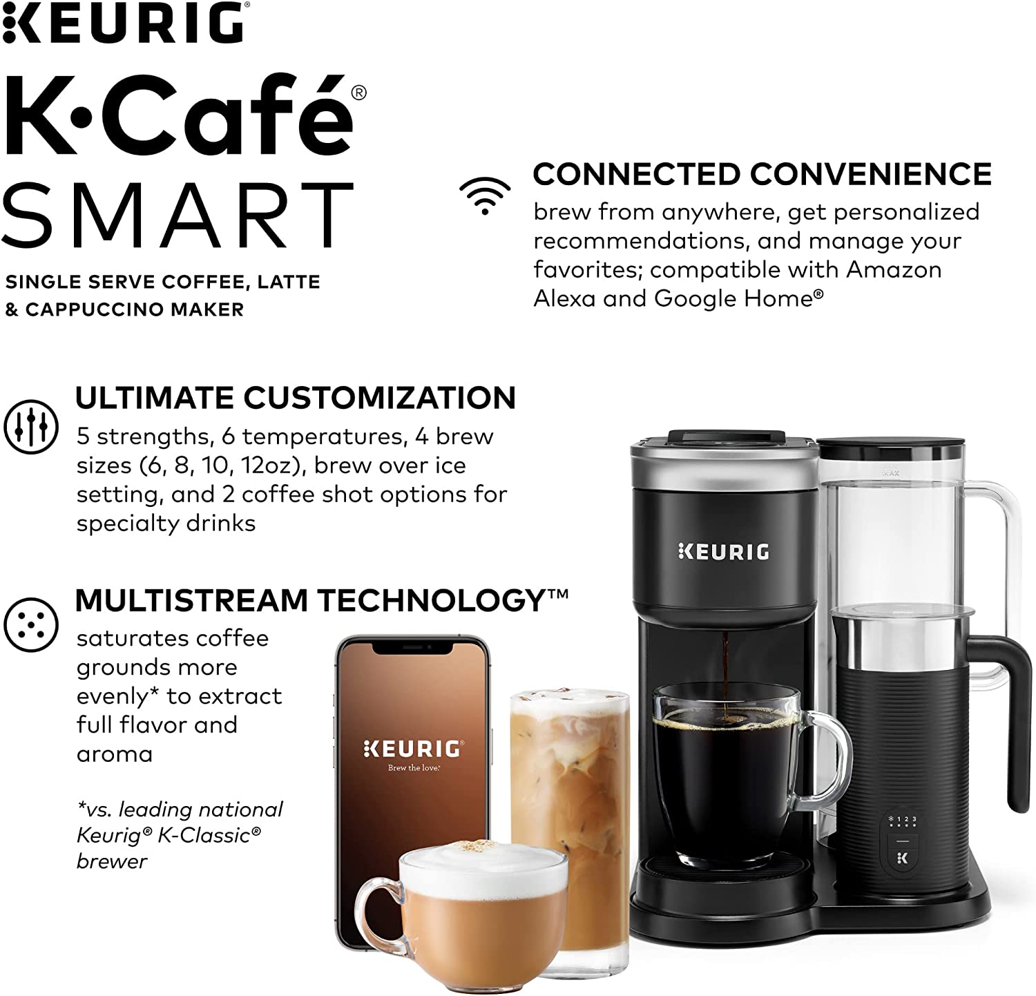 Keurig K-Café SMART Single Serve Coffee Maker with WiFi Compatibility. Latte and Cappuccino Machine with Built-In Frother. 6 Brew Sizes. Works with Alexa. Black