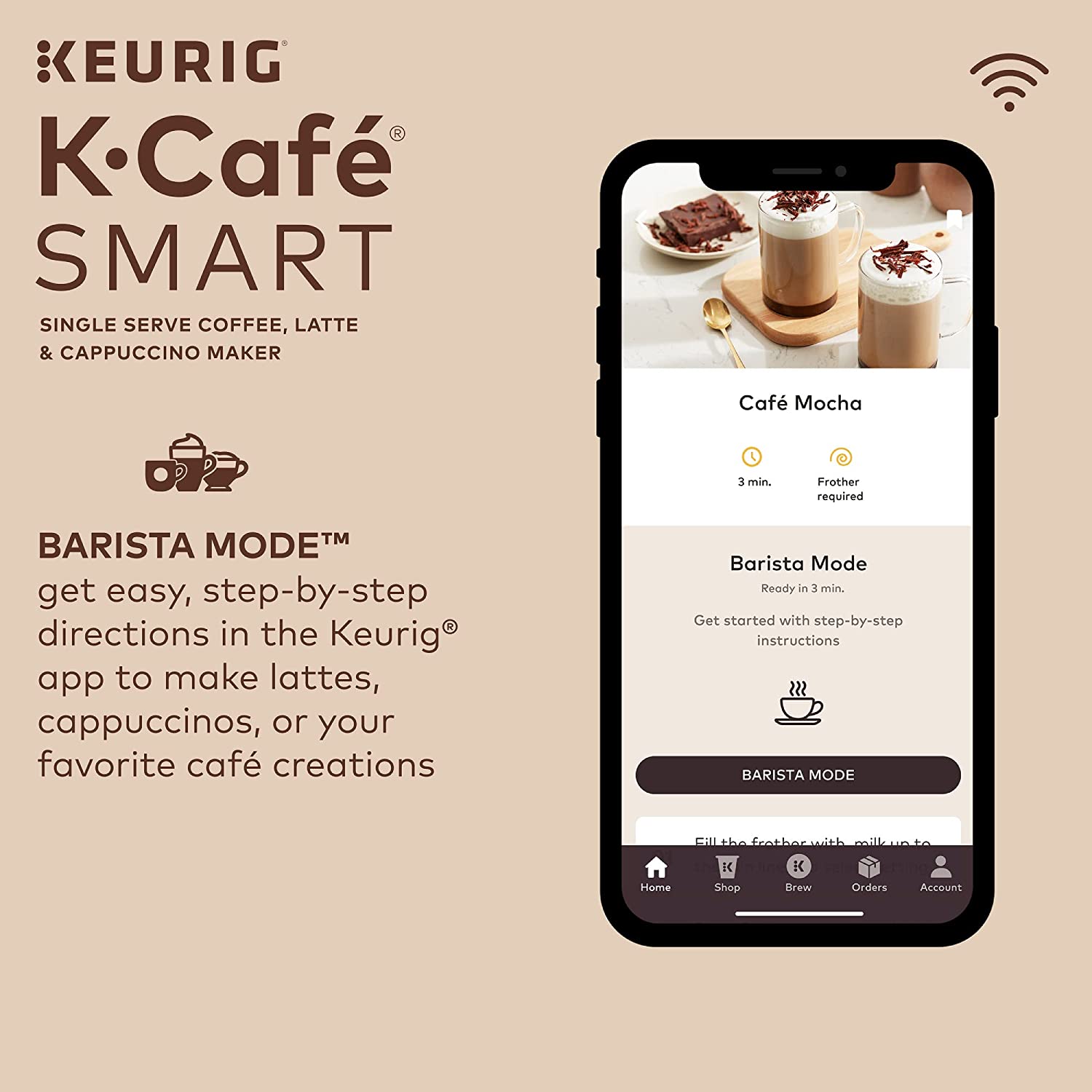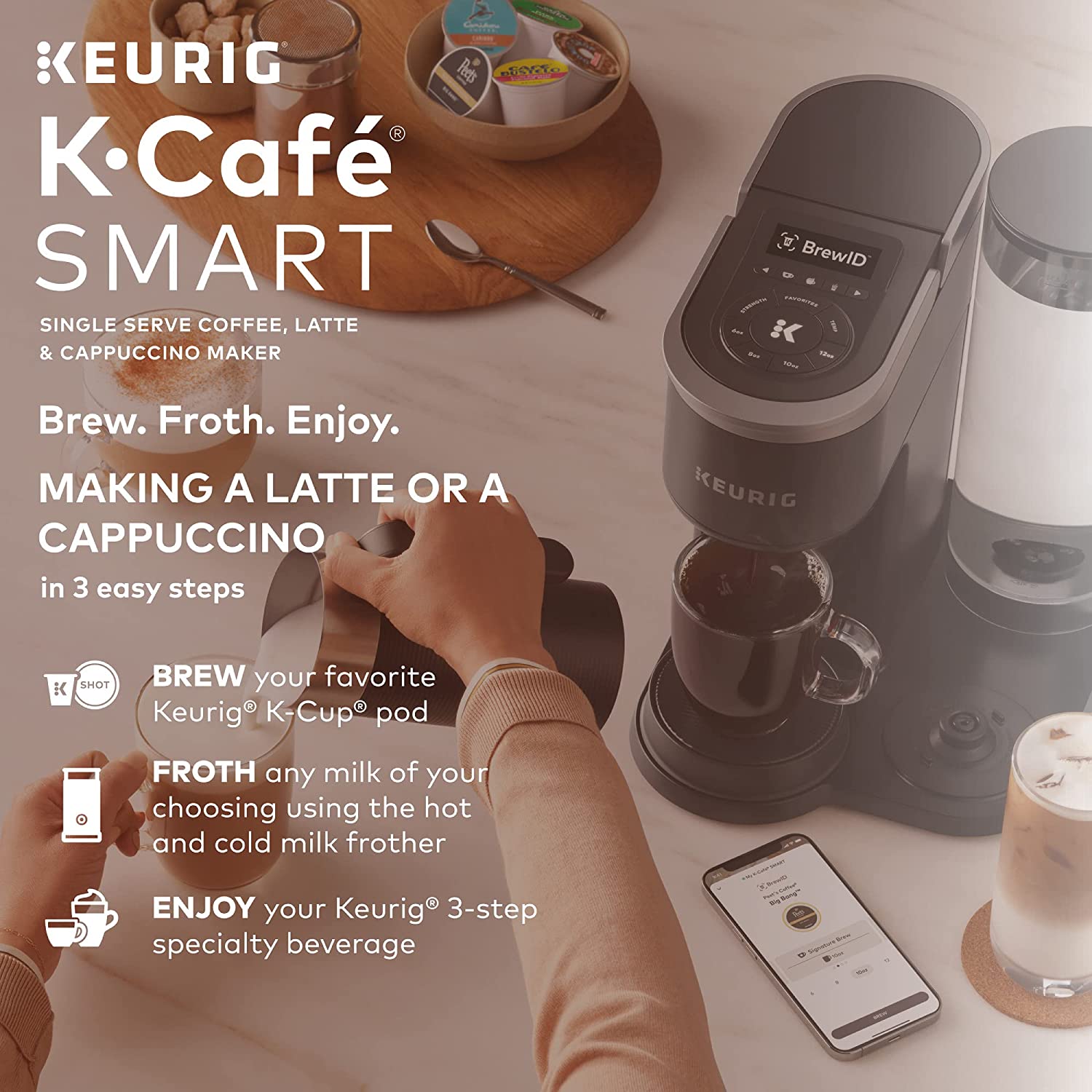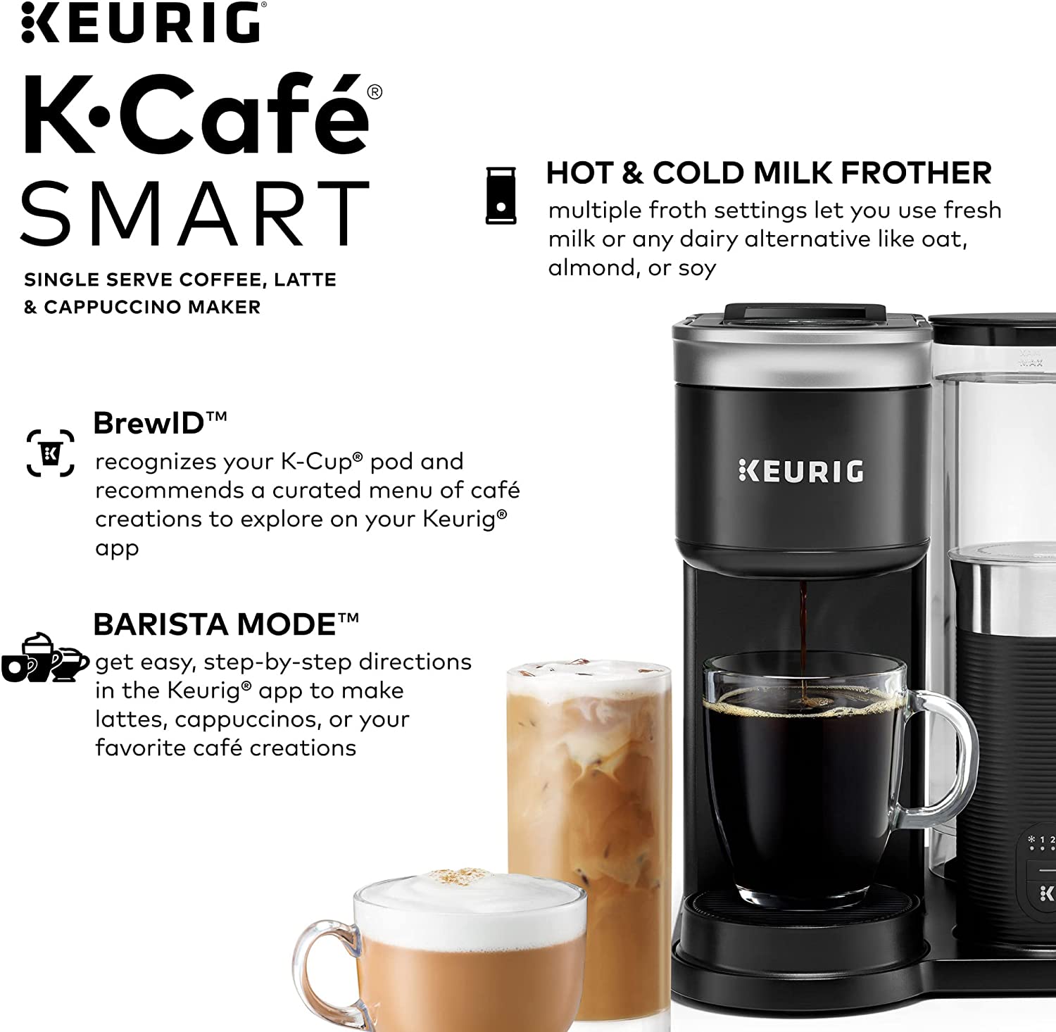 Keurig K-Café SMART Single Serve Coffee Maker with WiFi Compatibility. Latte and Cappuccino Machine with Built-In Frother. 6 Brew Sizes. Works with Alexa. Black