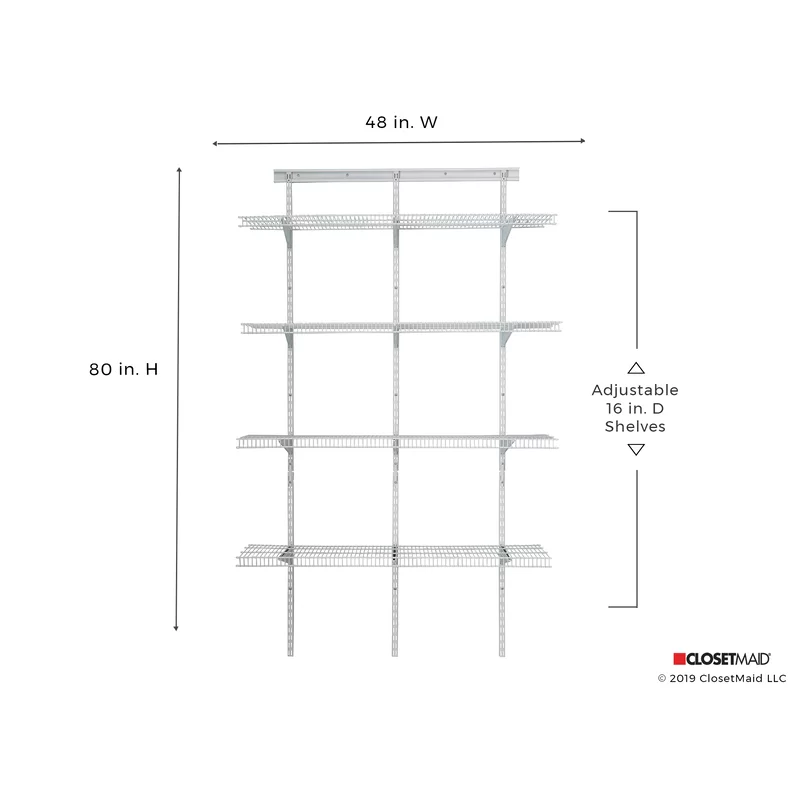 ClosetMaid 2845 ShelfTrack 16.75 in. D x 48 in. W x 80 in. H White Wire Utility Steel Closet System Kit