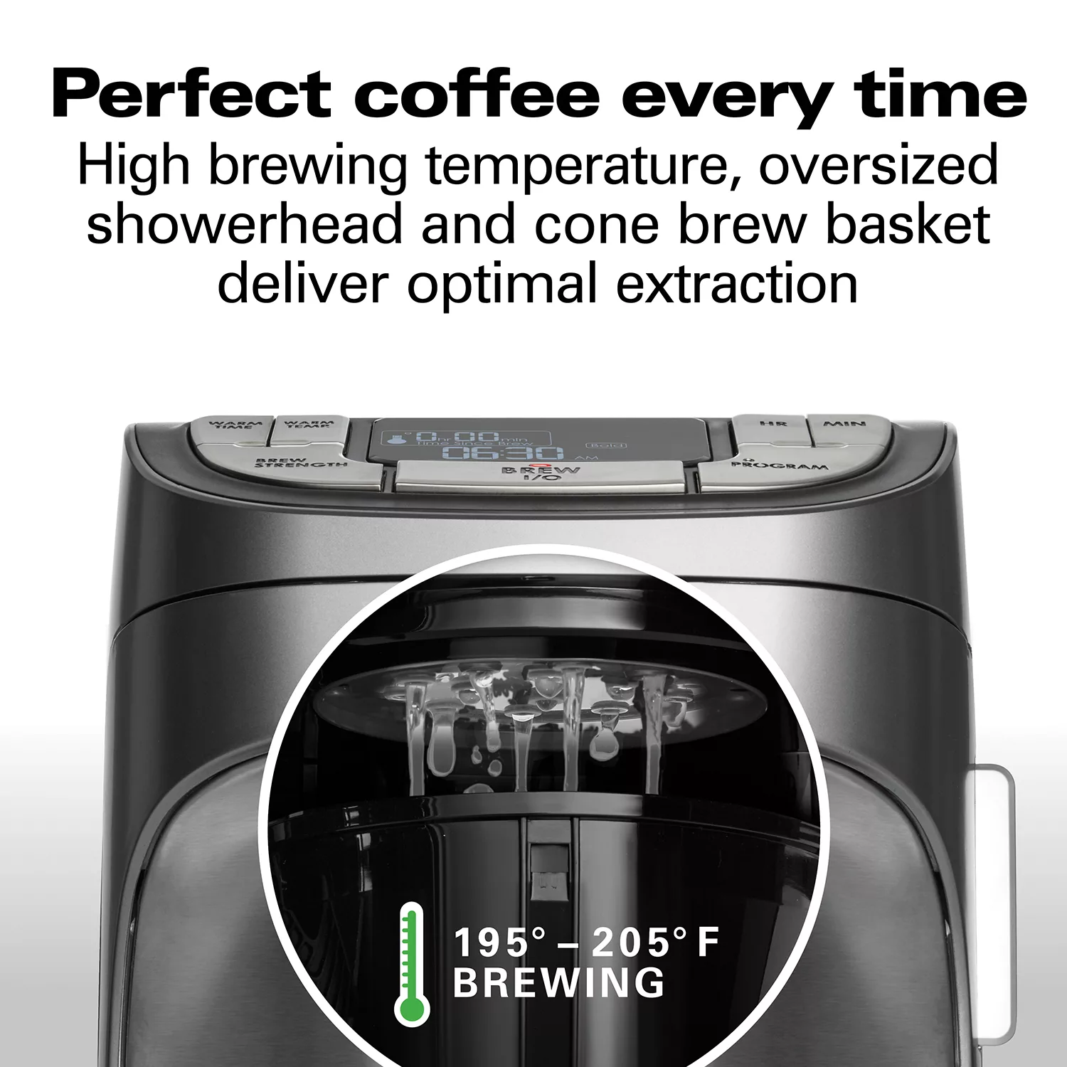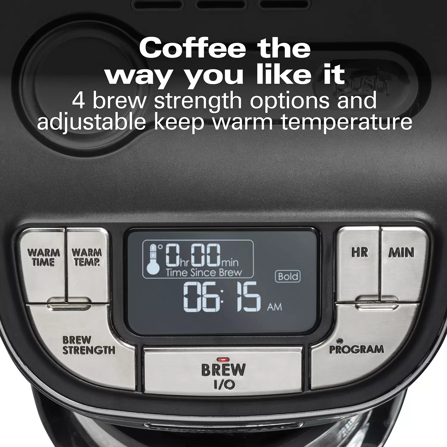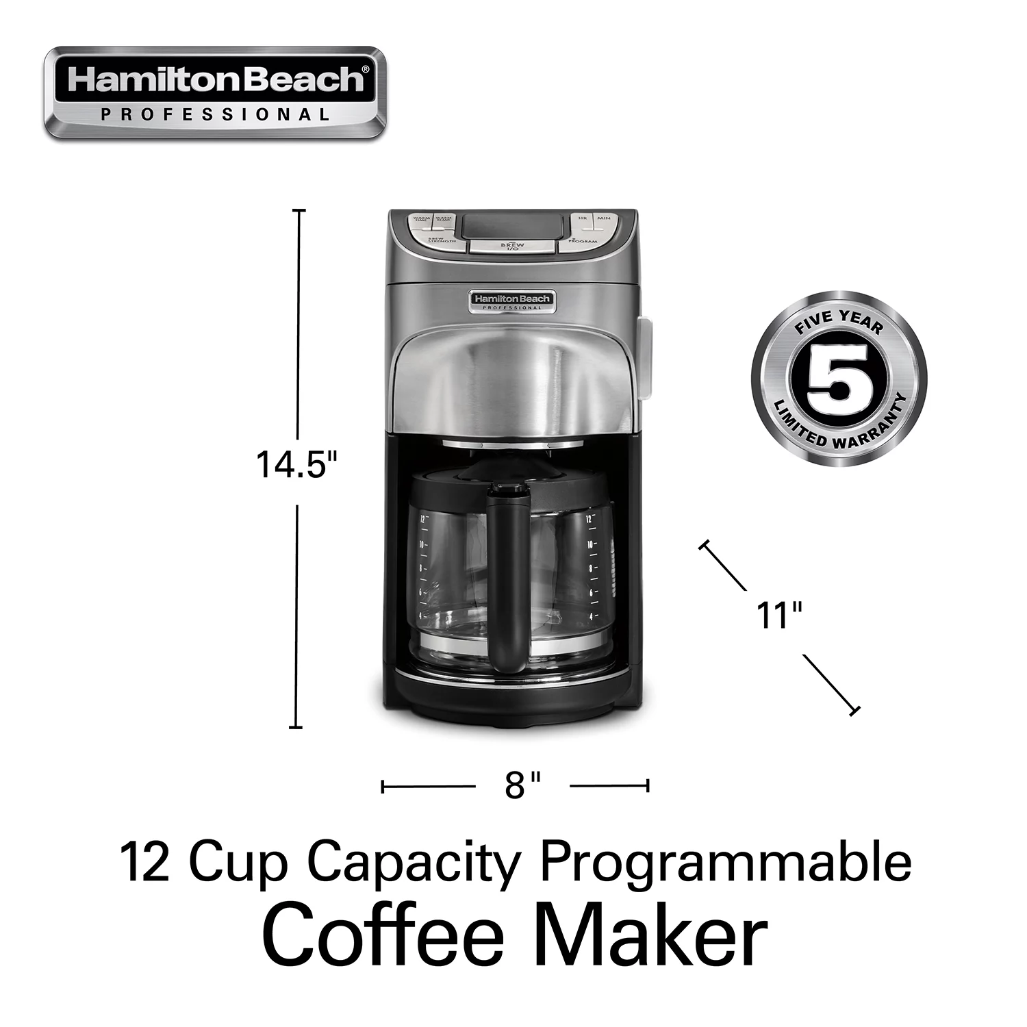 Hamilton Beach Professional Programmable Drip Coffee Maker. 12 Cup Capacity Ergonomic Carafe. 60oz Removable Reservoir. Brushed Metal (49500)