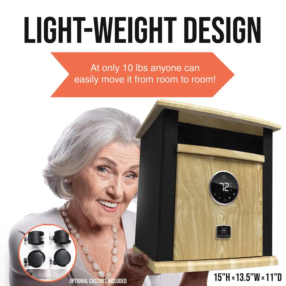 Heat Storm HS-1500-ILODB Portable Electric Infrared Space Heater. 1500-Watt Cabinet Infrared Quartz Element. Remote Control. Washable Filter