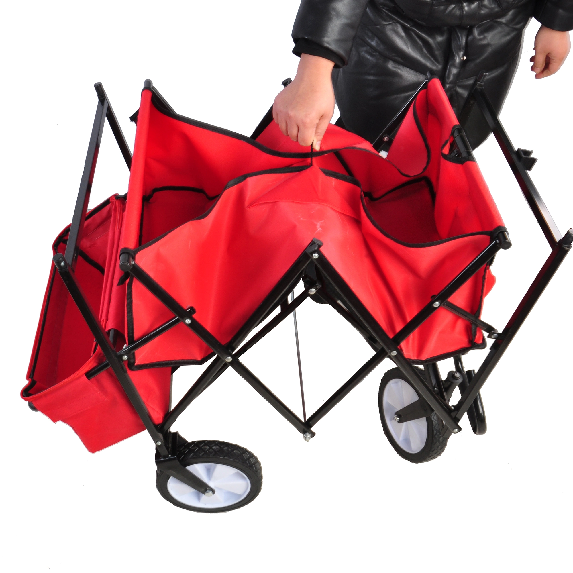 Collapsible Wagon Folding Cart with Canopy Beach Garden Outdoor Sport Utility Cart Wheels Adjustable Handle Rear Storage. Red. 49.2 x 20.5 x 45.27 inches
