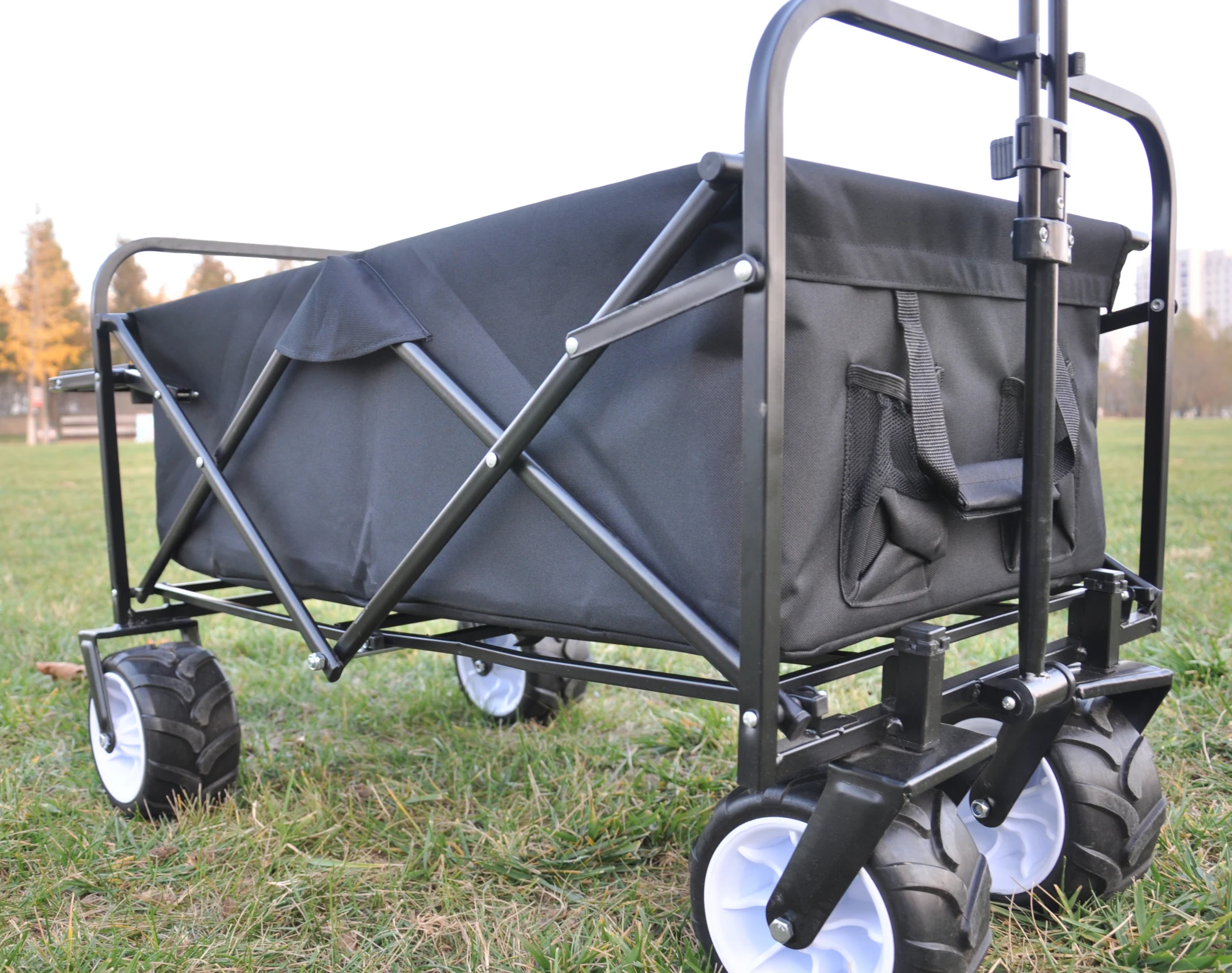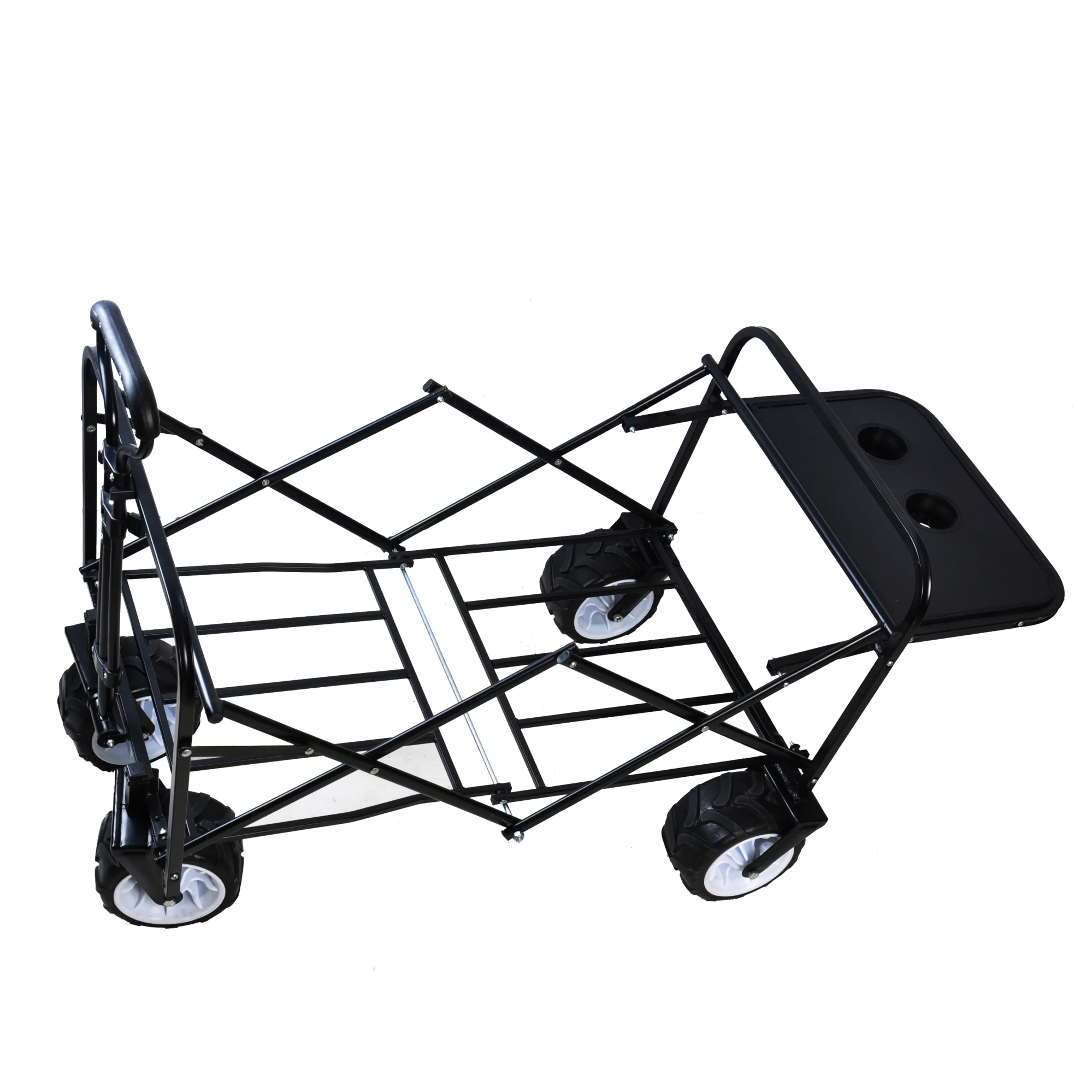Folding wagon Collapsible Outdoor Utility Wagon. Heavy Duty Folding Garden Portable Hand Cart. Drink Holder. Black 49.2 x 20.5 x 37.79 in
